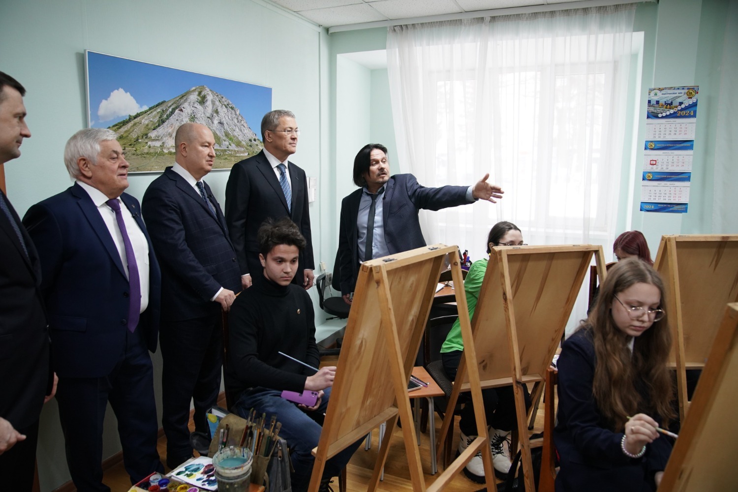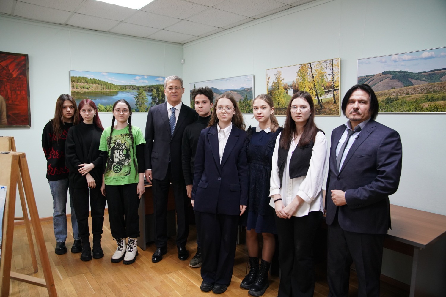 Сегодня в Уфе перед встречей с активом Собора русских Башкортостана Глава республики Радий Хабиров пообщался с юными художниками Уфимской детской школы искусств имени Виктора Пегова и волонтёрами движения «Маскировка "Щит" Уфа».