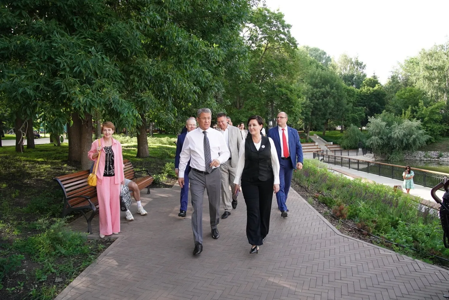 3 июля в Уфе Глава Башкортостана провел экскурсию по саду имени Аксакова для генерального директора Агентства стратегических инициатив Светланы Чупшевой, которая прилетела в республику для встречи с бизнес-сообществом региона и участия в национальном финале чемпионата Global Management Challenge.