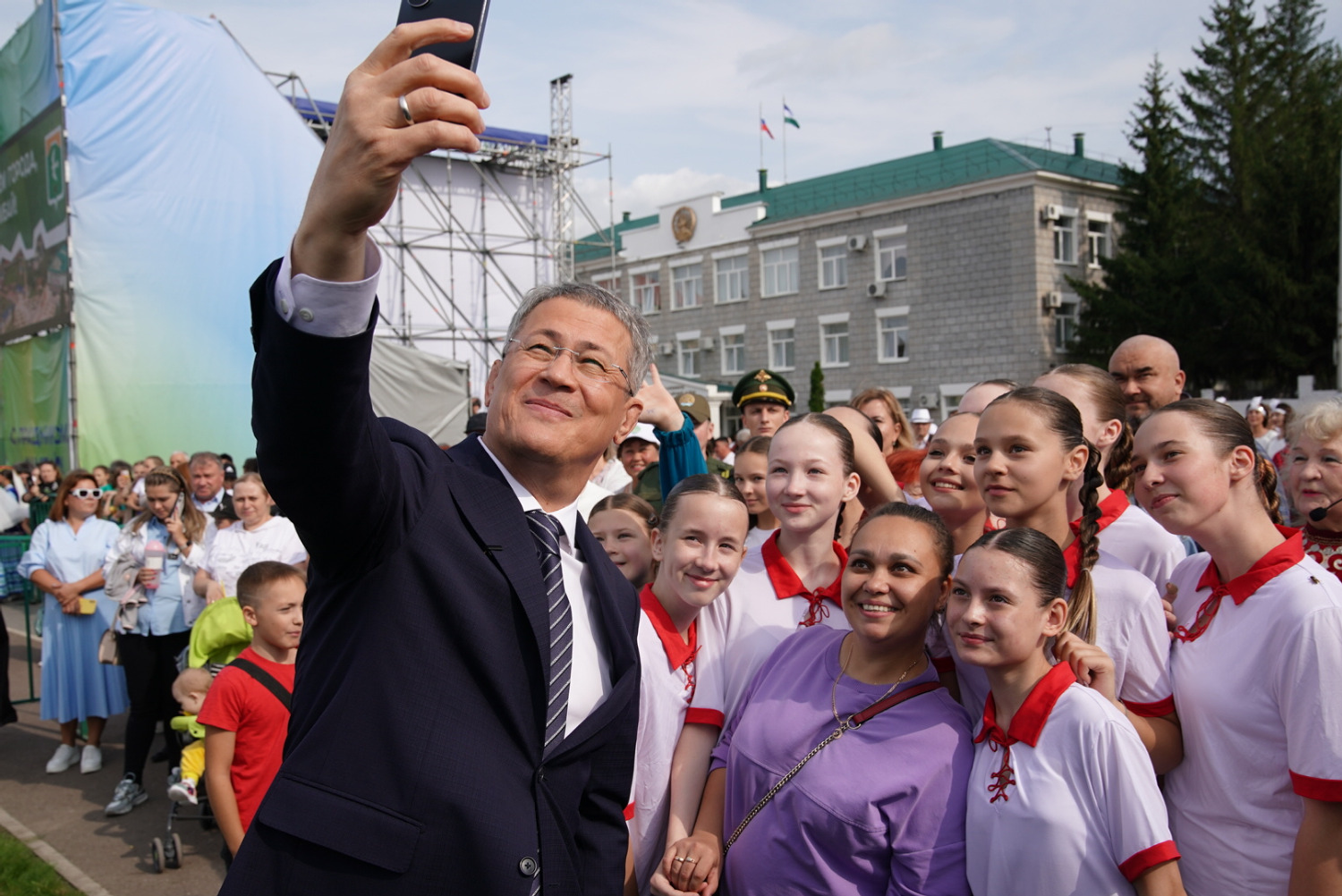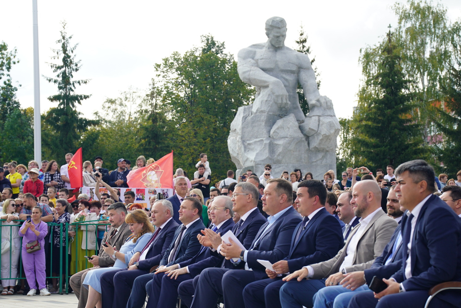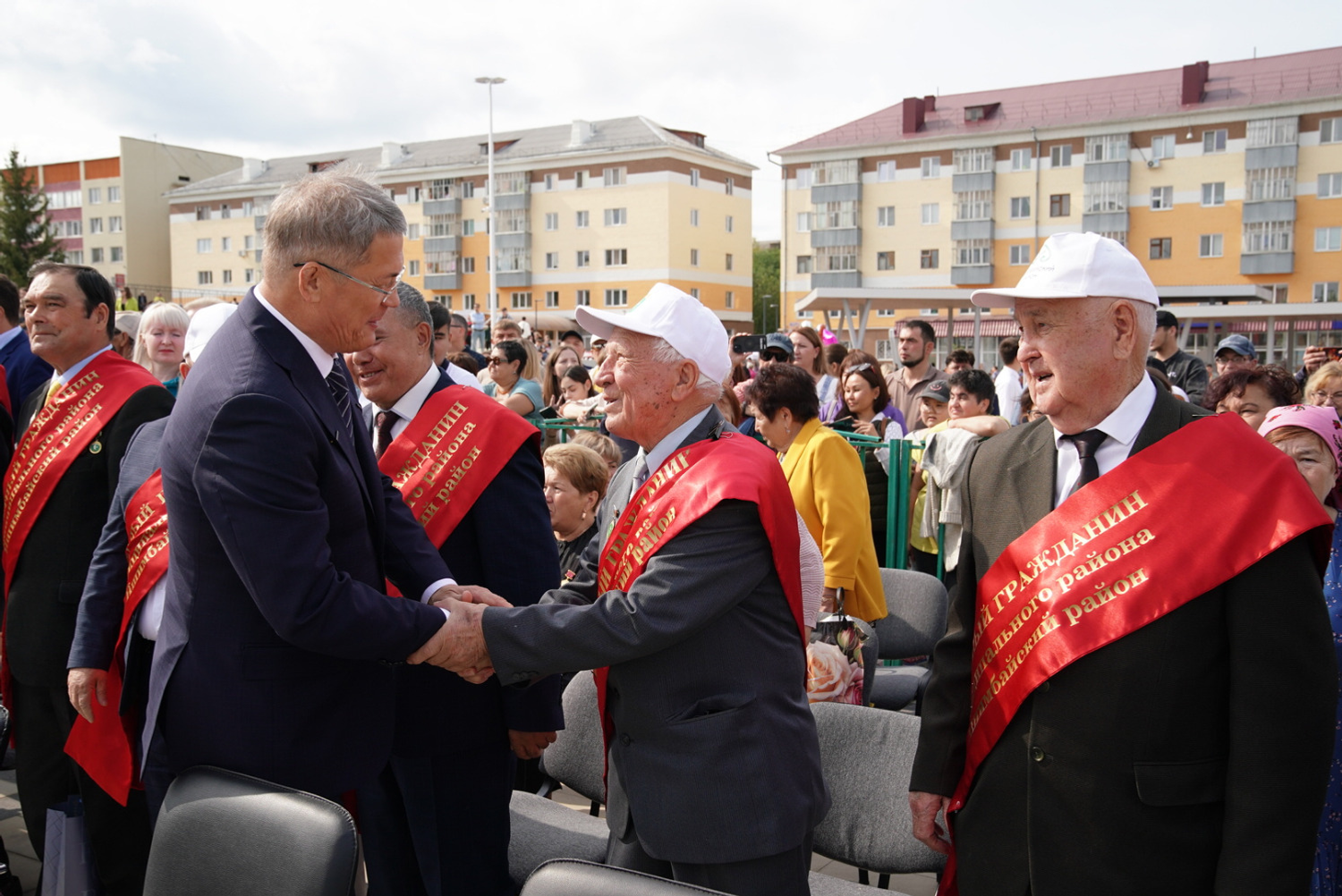 «Хөрмәтле Ишембай халҡы, ҡәҙерле яҡташтар! Хөрмәтле ҡунаҡтар! Уважаемые ишимбайцы, дорогие земляки! Уважаемые гости! Мы все сегодня, с особенным чувством души собрались на площади Первооткрывателей башкирской нефти. В судьбе каждого ишимбайца она занимает особое место. Это дань уважения нашим предшественникам, которые в очень сложных условиях обеспечили индустриальное развитие республики и тогда еще Советского Союза. Когда мы были совсем юными, мы здесь играли, назначали встречи, всегда проводили самые главные городские мероприятия. Сегодня на этой площади собрались наши дорогие ветераны. Я с огромным уважением и любовью хочу поблагодарить их за труд, за то, что они нам передали трудовую эстафету и создали все богатства, которыми мы располагаем. На площади находятся и те, кто сегодня работает, созидает, двигает и динамично развивает Ишимбай. Спасибо вам за ваш труд. Сегодня на этой площади очень много молодежи, которые с верой, надеждой смотрят в свое будущее и будущее родного города. А еще на этой площади собрались родные и близкие наших парней, которые защищают нашу страну на специальной военный операции. Вместе с нами находятся мамы наших парней, которые погибли, защищая нас. Спасибо вам большое, мы всегда будем помнить о ваших сыновьях», – сказал Радий Хабиров.