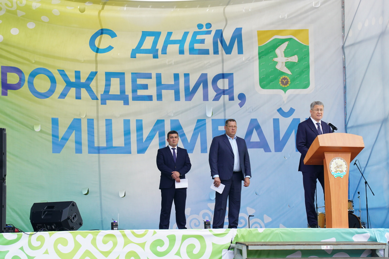 «Мы преобразили улицу Ленина, Губкина, парк Матросова, и сегодня мы после ремонта открываем любимую нашу площадь. И в душе у каждого из нас самое лучшее чувство. Потому что, несмотря ни на какие трудности, наш родной Башкортостан, наш любимый Ишимбай развивается. И будет самым красивым городом в нашей дорогой и красивой республике. Я хочу сказать слова уважения компании «Башнефть» и руководству «Роснефти». В 1932 году наша земля дала первую нефть. И очень долго являлась опорой нефтяной отрасли нашей страны. «Башнефть» всегда с нами. Спасибо нашей родной, башкирской нефтяной компании. Позвольте мне, уважаемые ишимбайцы, поздравить вас с днем рождения нашего города, пожелать успехов, мира и добра вашим домам. Байрам менән, ҡәҙерле Ишембай халҡы», – сказал Радий Хабиров.
