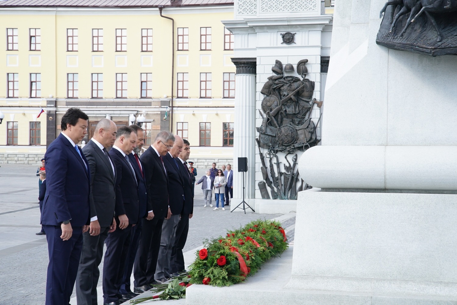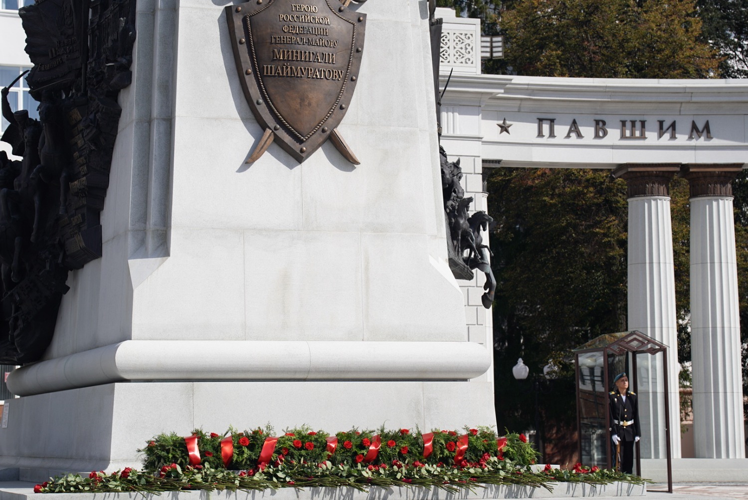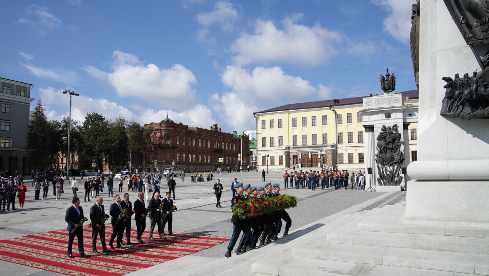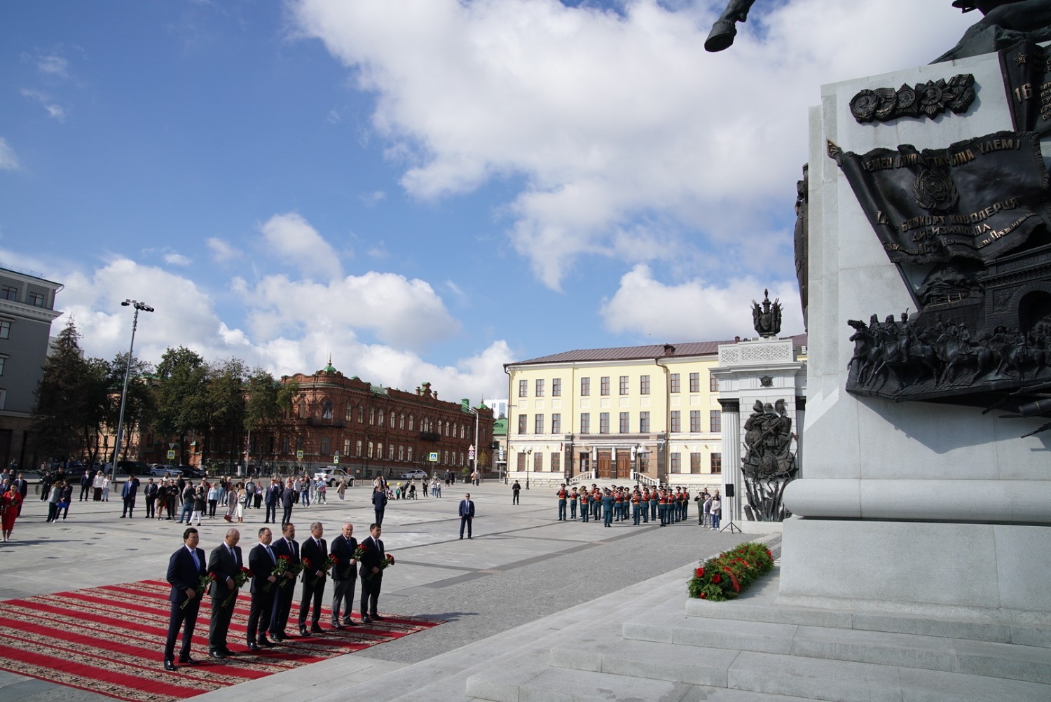 Сегодня, 31 августа, на Советской площади Уфы в рамках официальных мероприятий празднования 450-летия столицы Башкортостана состоялась церемония возложения гирлянды Славы и цветов к памятнику Герою России, легендарному комдиву Минигали Шаймуратову.