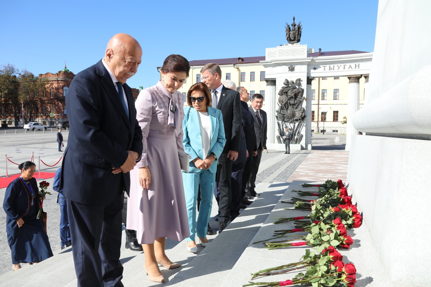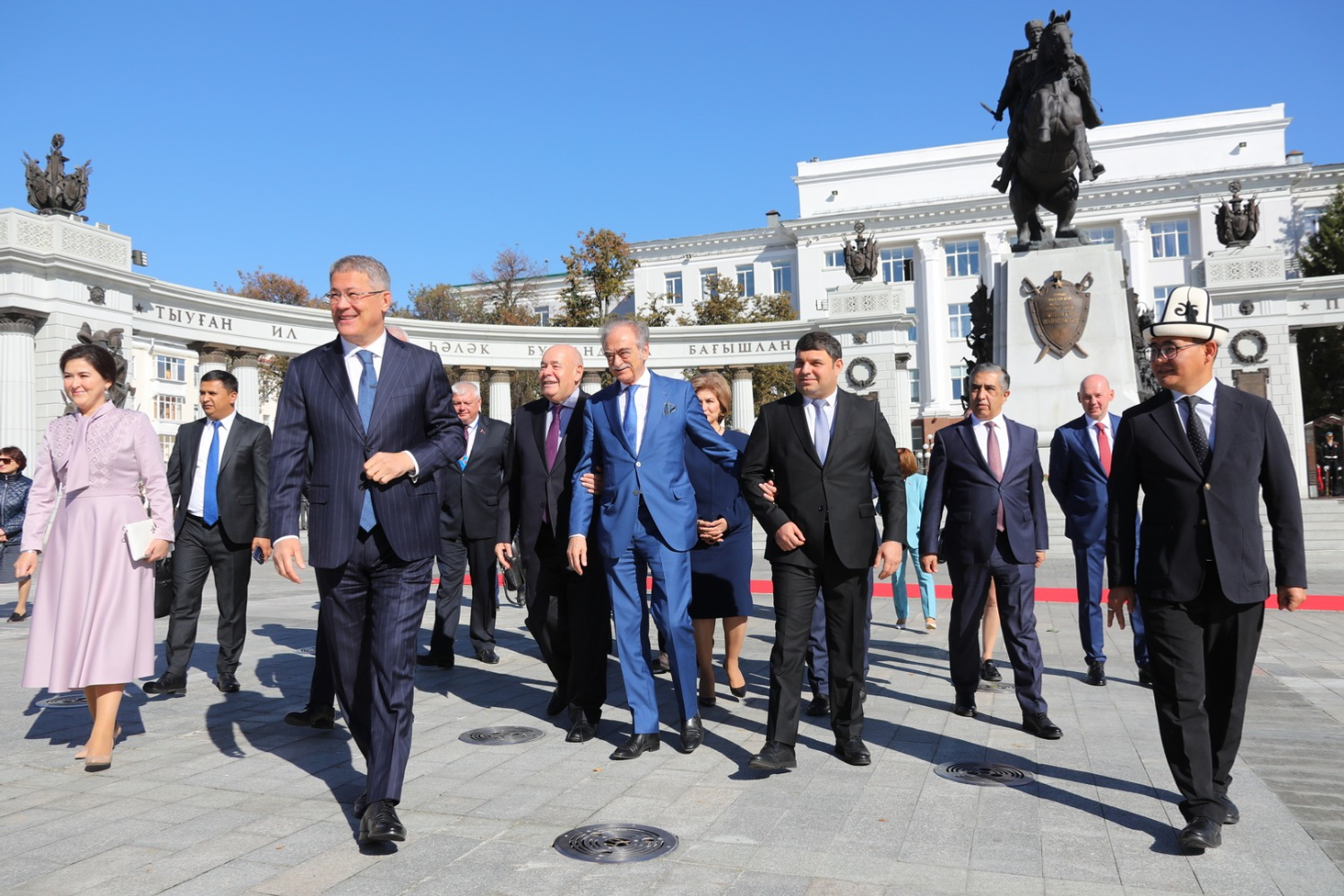 17 сентября на Советской площади Уфы Глава Башкортостана Радий Хабиров, председатель правления межгосударственного фонда гуманитарного сотрудничества государств-участников СНГ (МФГС), Чрезвычайный и Полномочный Посол Азербайджана в России Полад Бюльбюль оглы, сопредседатель правления МФГС, специальный представитель Президента РФ по международному культурному сотрудничеству Михаил Швыдкой и участники XVII форума творческой и научной интеллигенции государств-участников СНГ возложили цветы к памятнику Герою России, легендарному комдиву Минигали Шаймуратову.