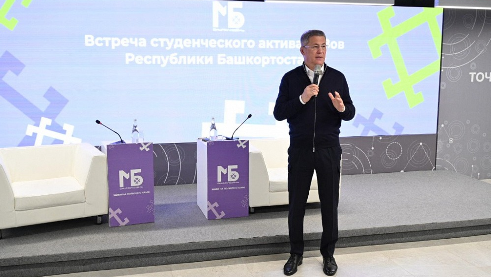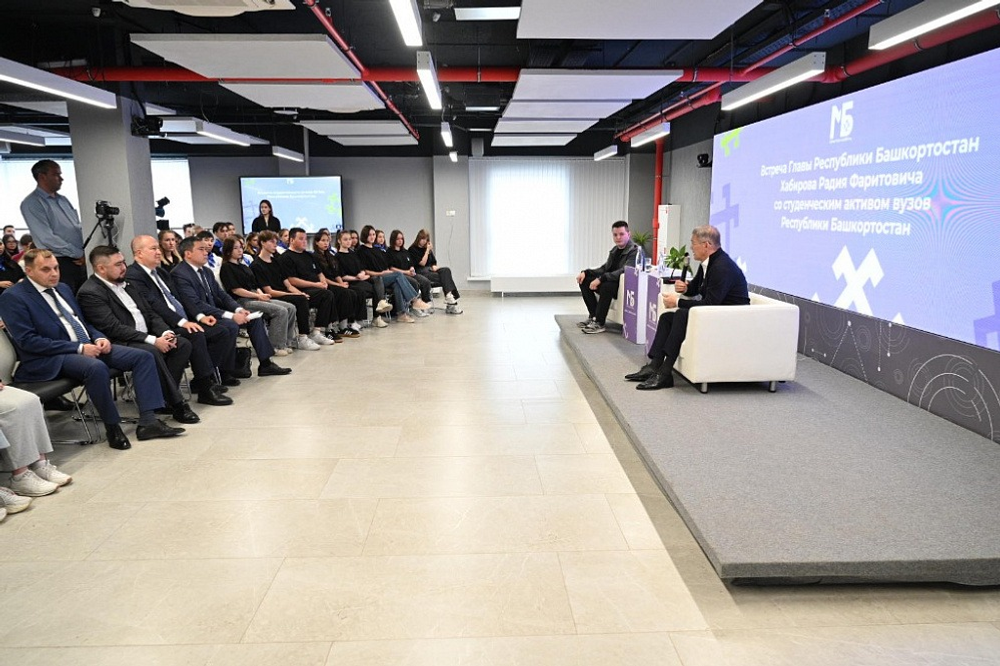 19 сентября в Уфе на площадке Межвузовского студенческого кампуса Евразийского научно-образовательного центра мирового уровня Глава Башкортостана Радий Хабиров встретился со студенческим активом вузов республики – представителями профсоюзов, лидерами студенческих советов и общежитий, руководителями спортивных, культурных и волонтёрских клубов.