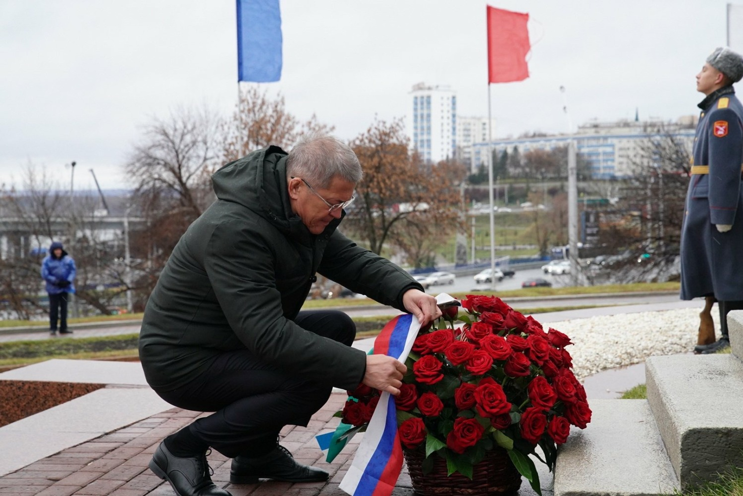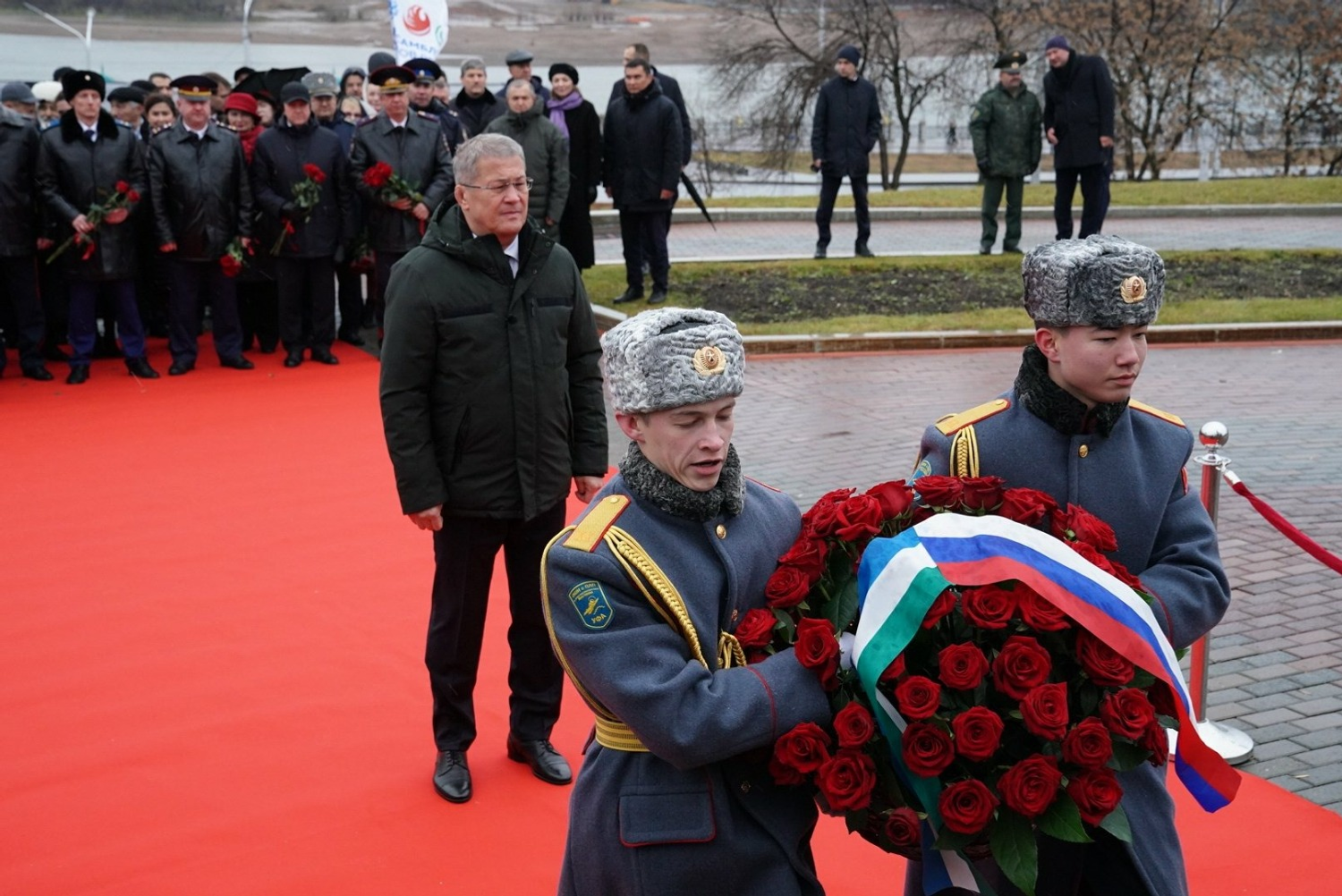 В церемонии принял участие Глава Башкортостана Радий Хабиров. От имени многонационального народа республики он почтил память о событиях 4 ноября 1612 года, когда воины народного ополчения освободили российское государство от интервентов. Прозвучали гимны России и Башкортостана, почетные гости возложили цветы.