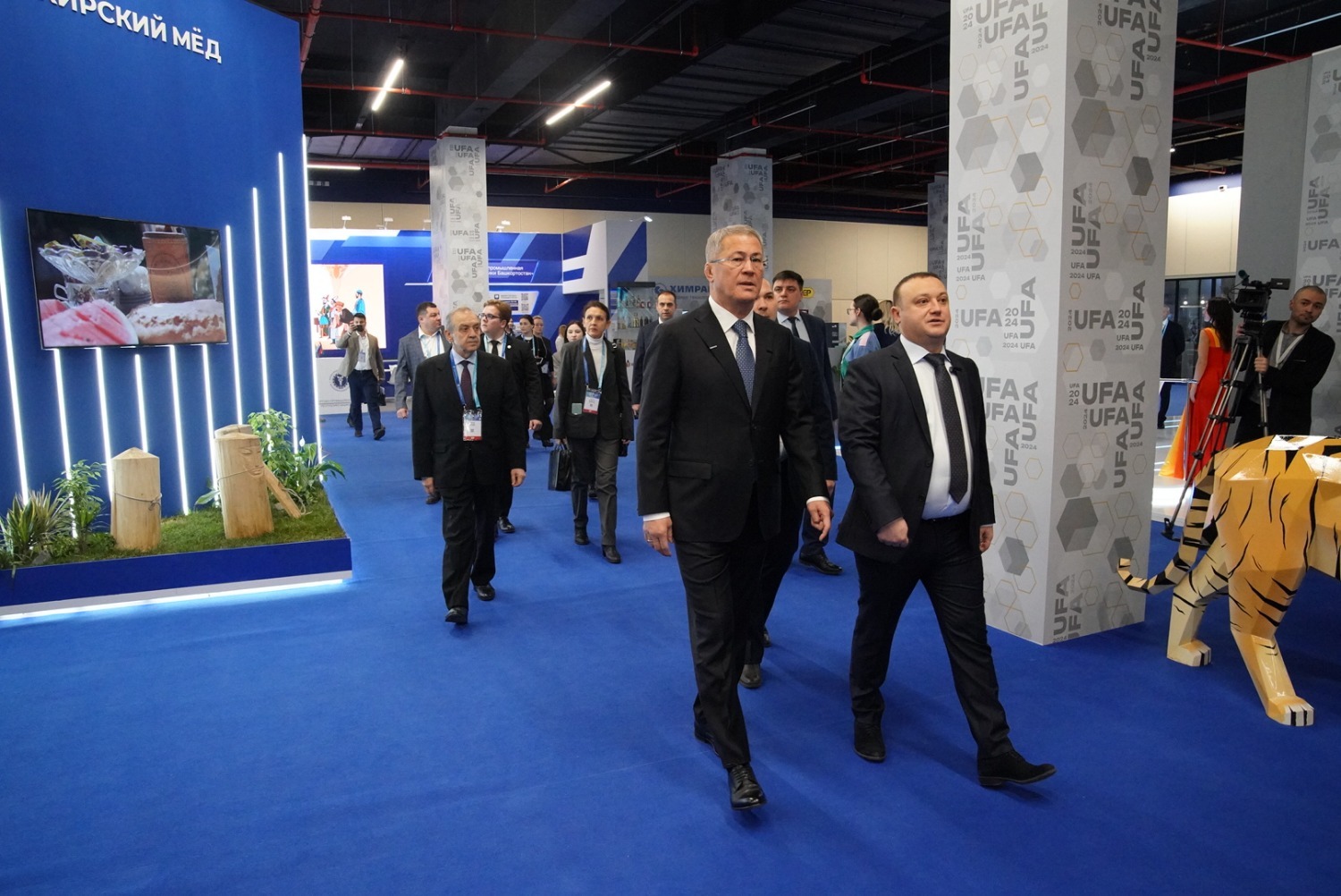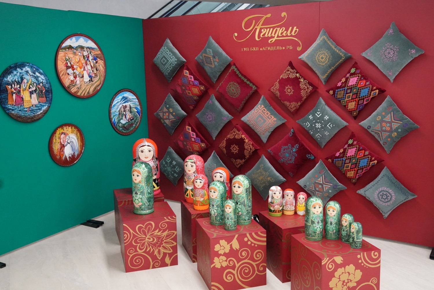 Перед началом официальных мероприятий Глава Башкортостана Радий Хабиров осмотрел выставку народных художественных промыслов двух государств. Свою продукцию здесь представили 60 организаций из 10 регионов России – Москвы, Марий Эл, Дагестана, Удмуртии, Саратовской, Оренбургской, Тюменской, Омской и Ульяновской областей. Среди экспонентов – 20 ремесленников из Башкортостана.