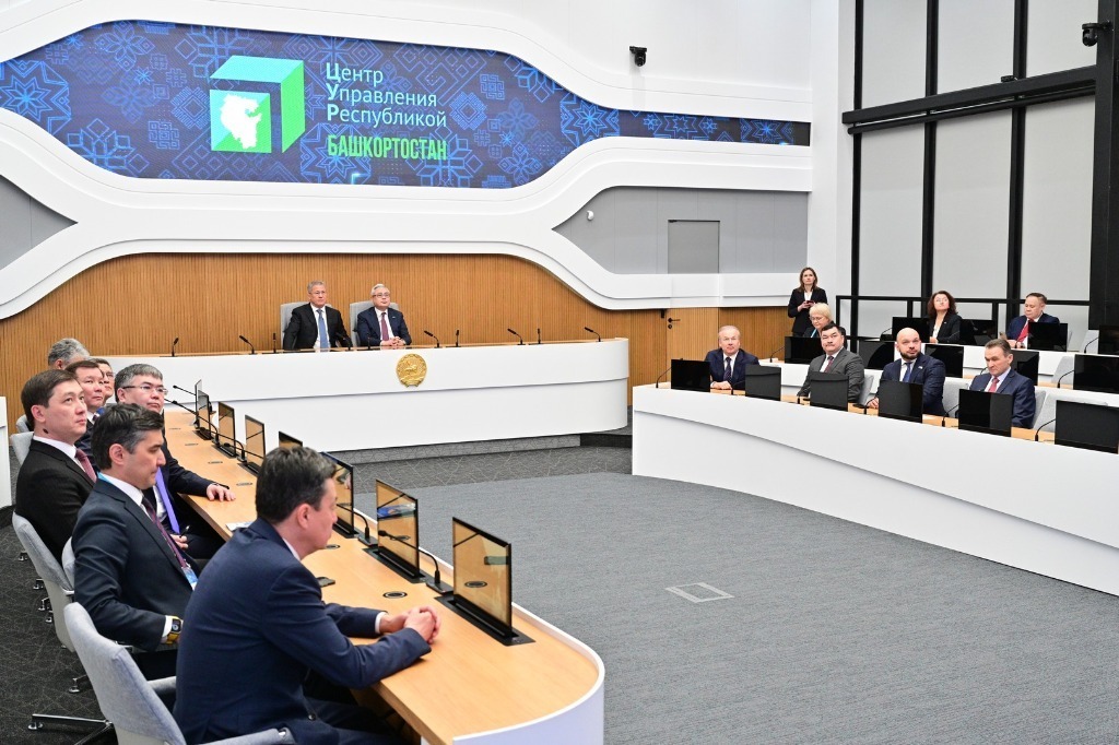 Глава Башкортостана Радий Хабиров и заместитель премьер-министра — руководитель аппарата правительства Казахстана Галымжан Койшыбаев, приехавший в Уфу для участия в XX Форуме межрегионального сотрудничества России и Казахстана, посетили Центр управления республикой. Об этом сообщили в пресс-службе Главы РБ.