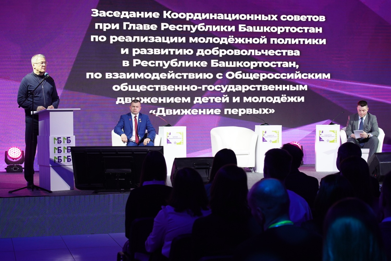 Сегодня, 10 декабря, в Чишминском районе на территории военно-патриотического парка «Патриот» имени Героя России Максима Серафимова Глава Башкортостана Радий Хабиров провел заседания Координационных советов по реализации молодежной политики и развитию добровольчества (волонтерства) в республике и по взаимодействию с Общероссийским общественно-государственным движением детей и молодежи «Движение первых».