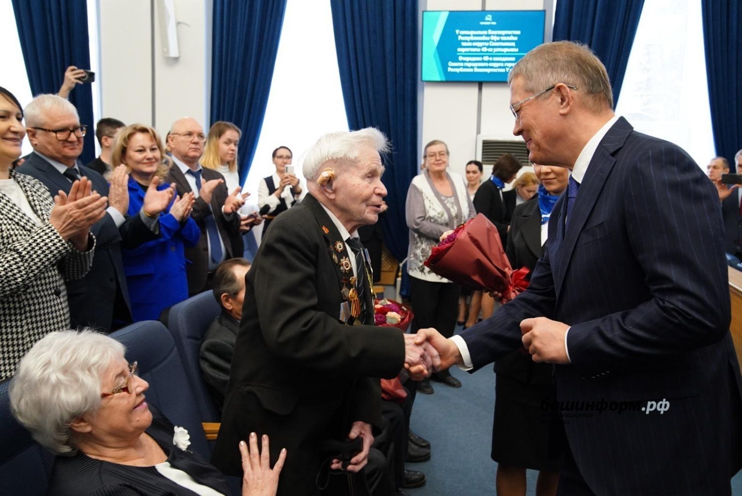 На заседании ветеранам-фронтовикам Глава Башкирии вручил юбилейную медаль «80 лет Победы в Великой Отечественной войне 1941–1945 годов». Всего юбилейной медали в Уфе удостоены 1487 ветеранов Великой Отечественной войны. Также 48 ветеранов стали почетными гражданами столицы, сообщил Башинформ.