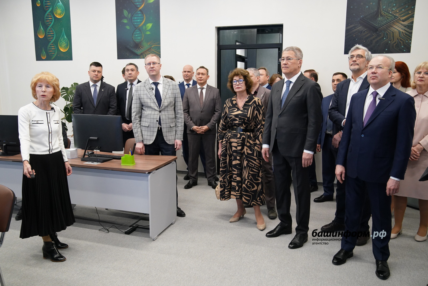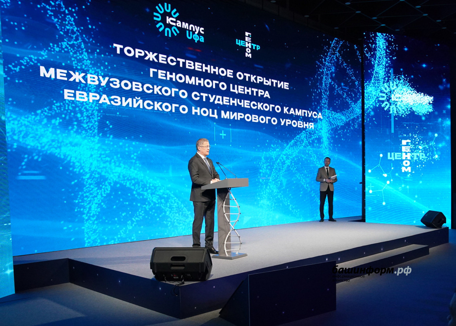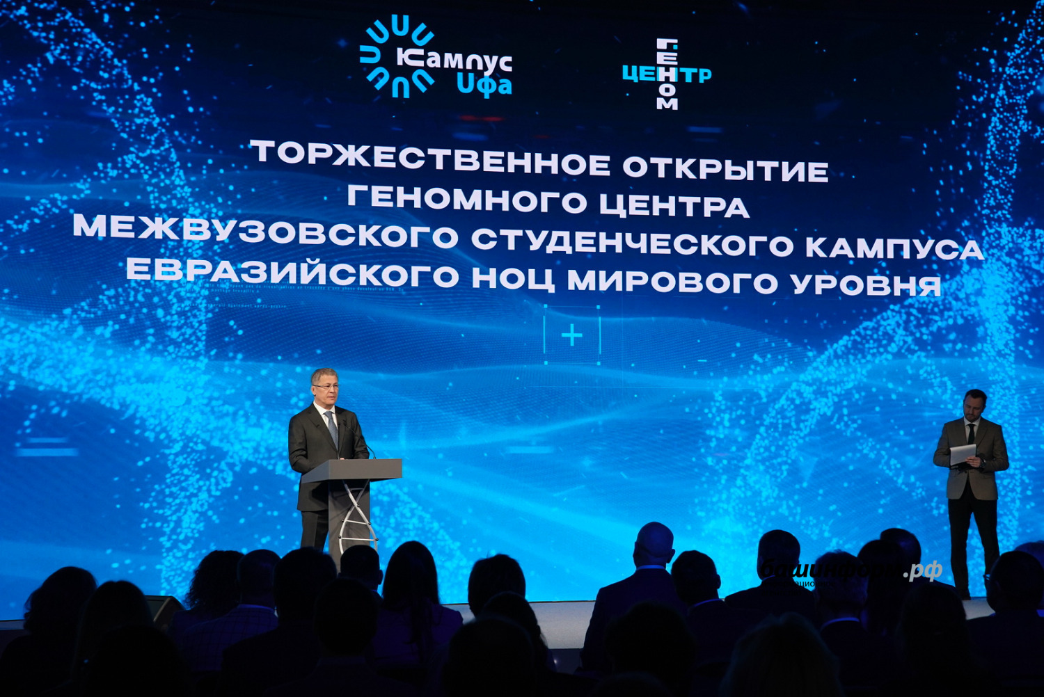 До начала церемонии руководитель республики осмотрел центр интеллектуальной геномики. Научный руководитель Института биохимии и генетики Уфимского научного центра РАН Эльза Хуснутдинова рассказала, что учреждение накопило большой объем генетического материала, который необходимо анализировать с использованием методов информатики и искусственного интеллекта, что позволит делать новый центр.