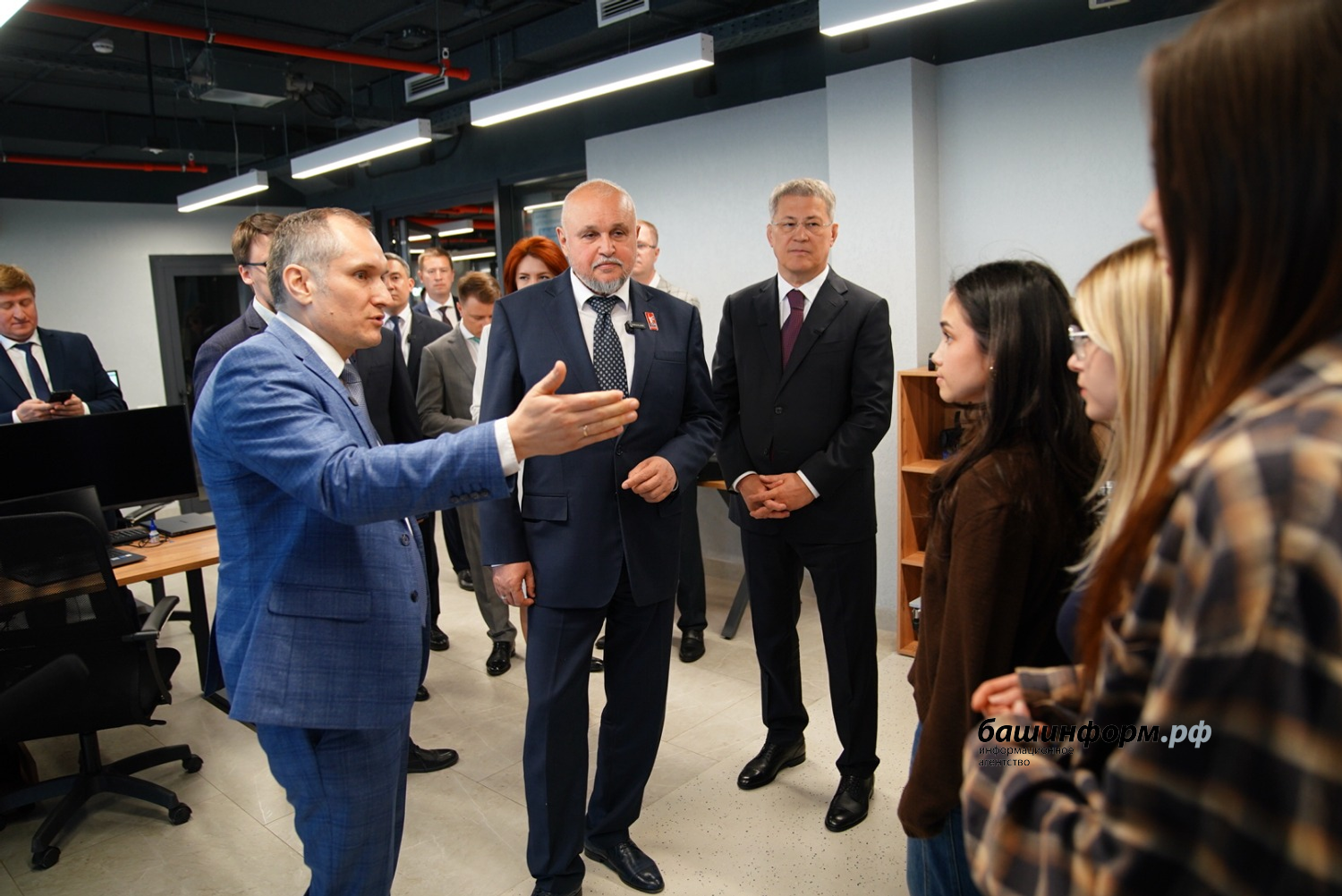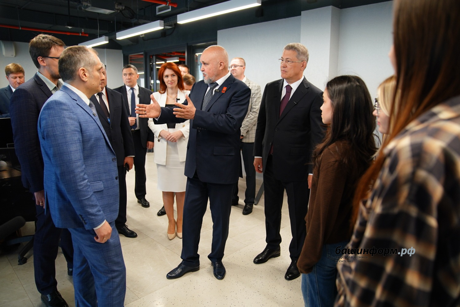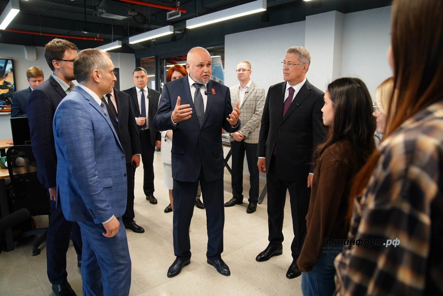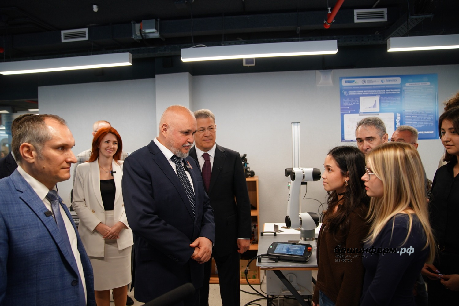 Во время визита Сергей Цивилев и Радий Хабиров ознакомились с работой лабораторий вузов и инновационных площадок, которые разместили в здании кампуса. На одной из площадок УУНиТ разместили лаборатории Передовой инженерной школы. Она включает зону для сборки, программирования и эксплуатации беспилотных летательных аппаратов.