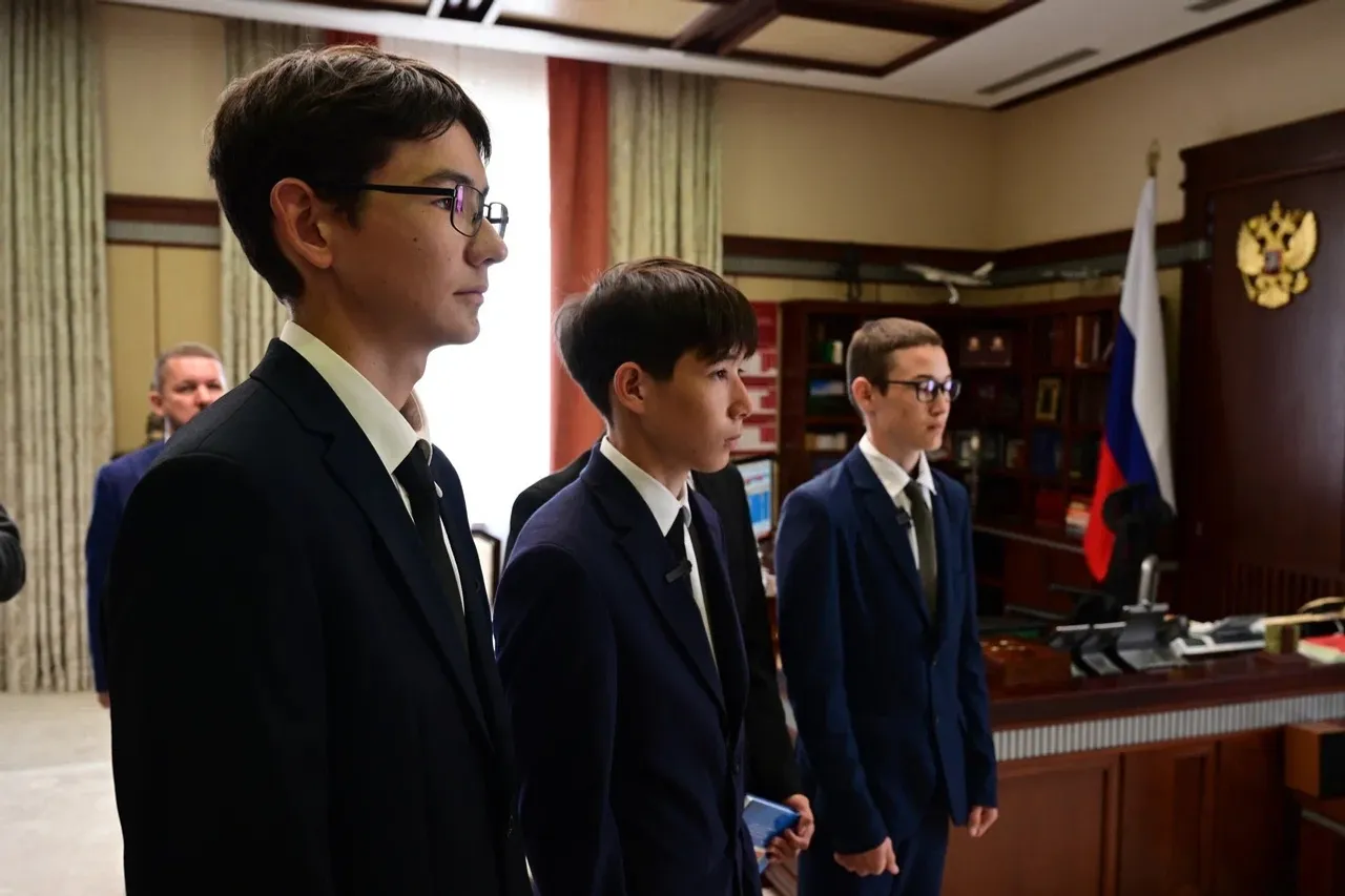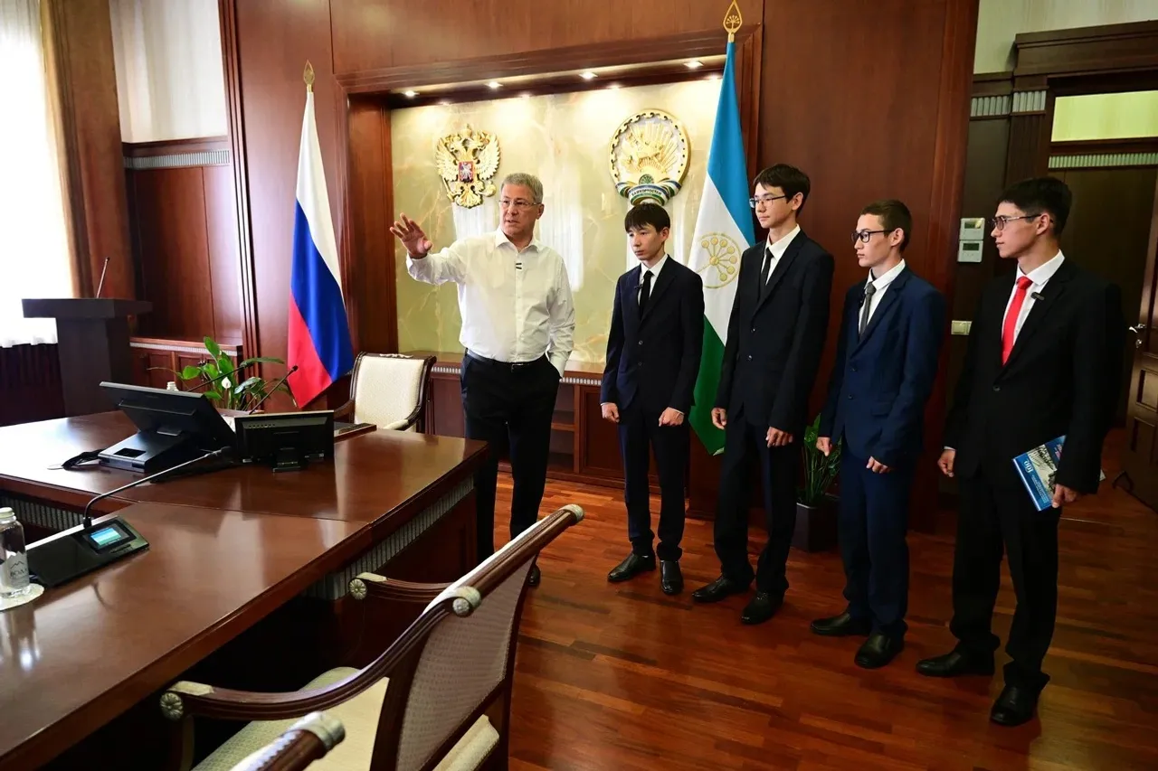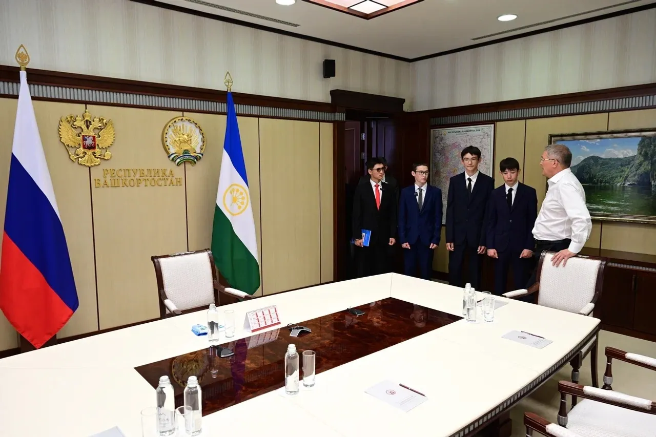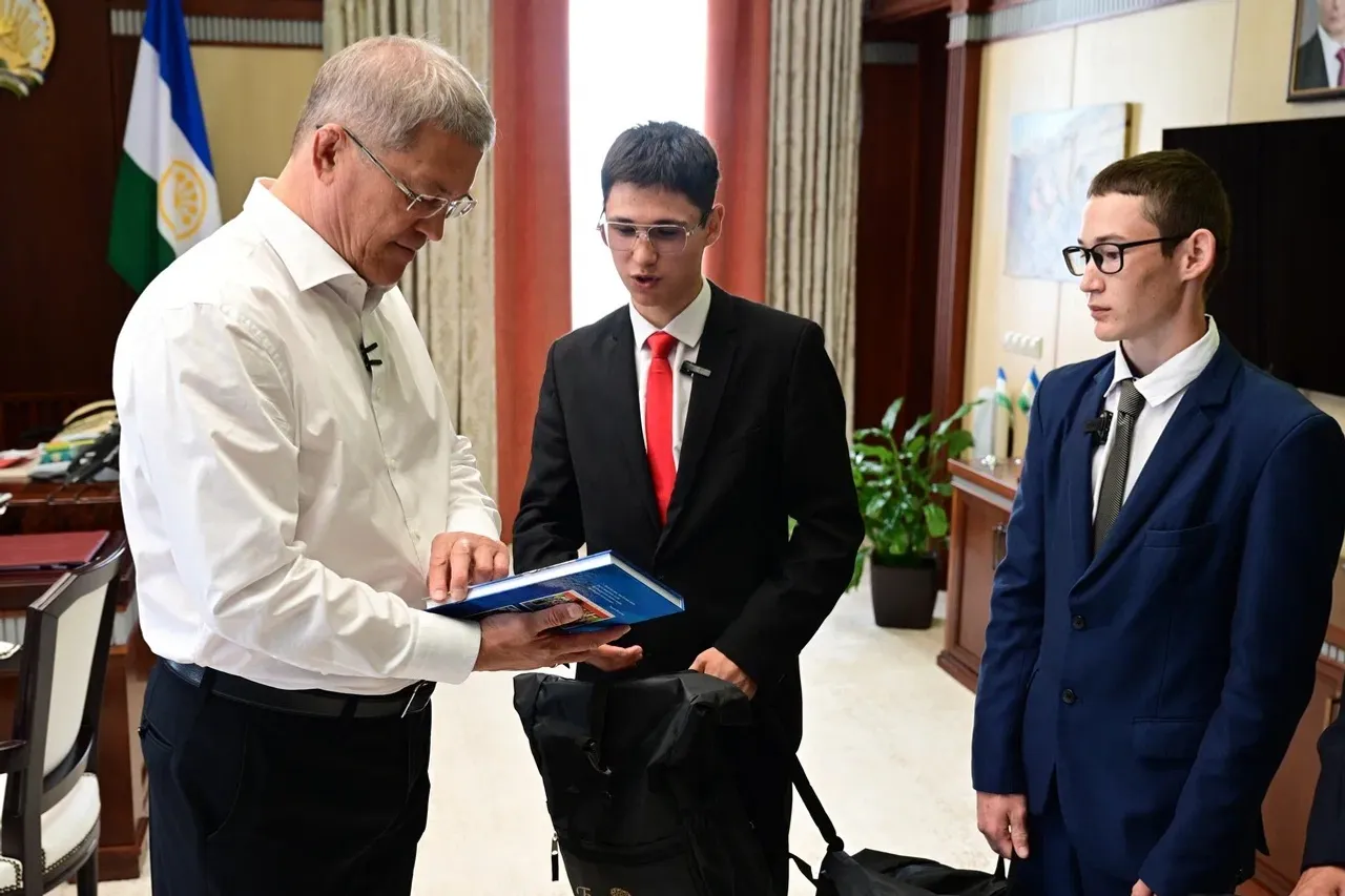 Десятиклассники Стерлитамакского лицея-интерната № 2 имени Ленина Аскар Галимуллин, Алмаз Тагиров, Арслан Ишкильдин и Ильнур Салихкулов сегодня побывали в рабочем кабинете Главы Башкортостана и пообщались с Радием Хабировым.