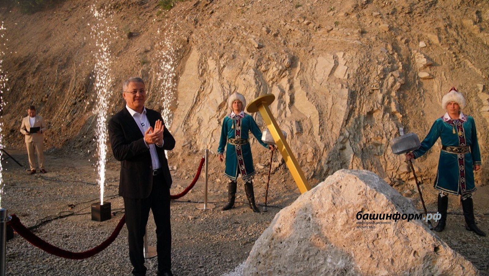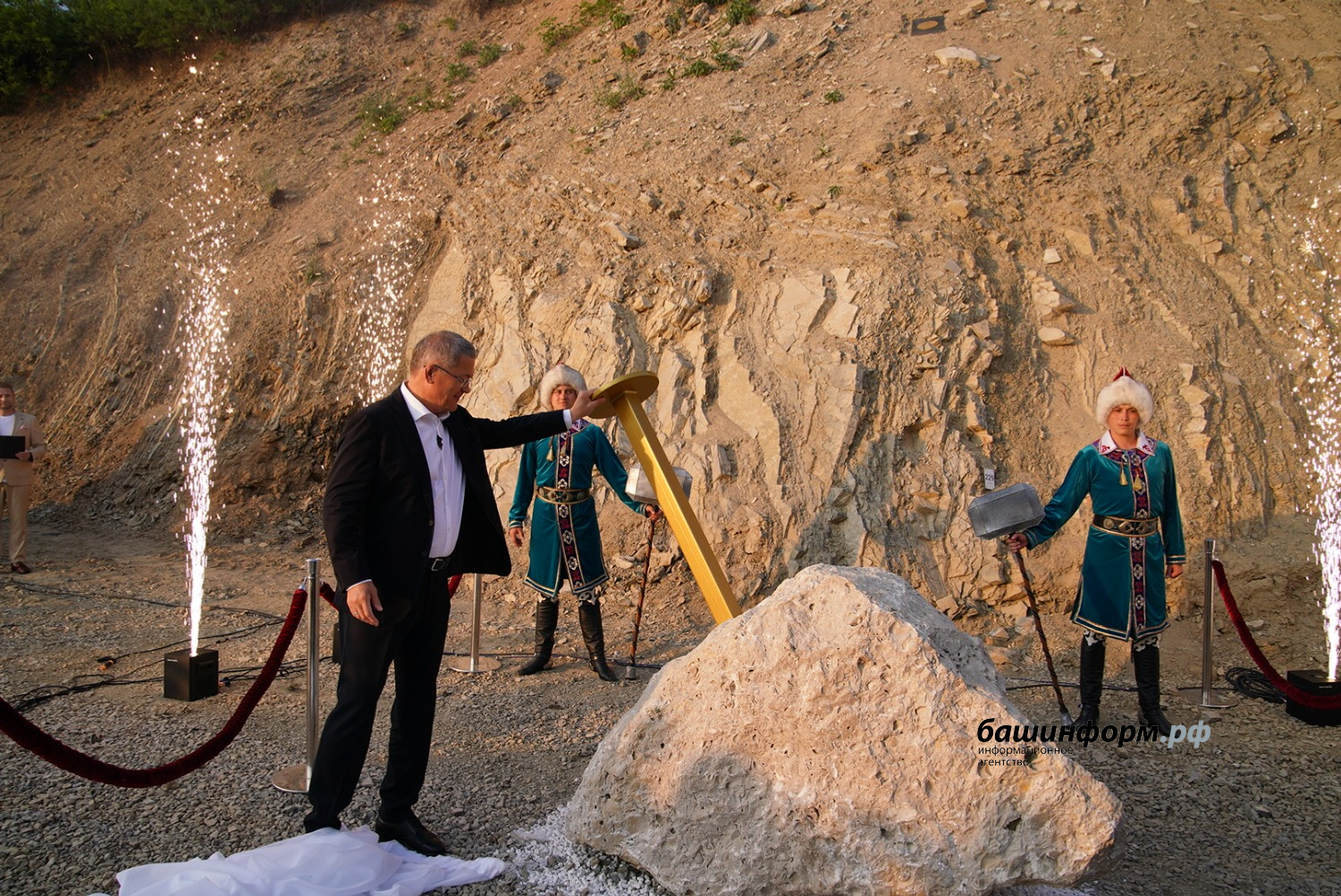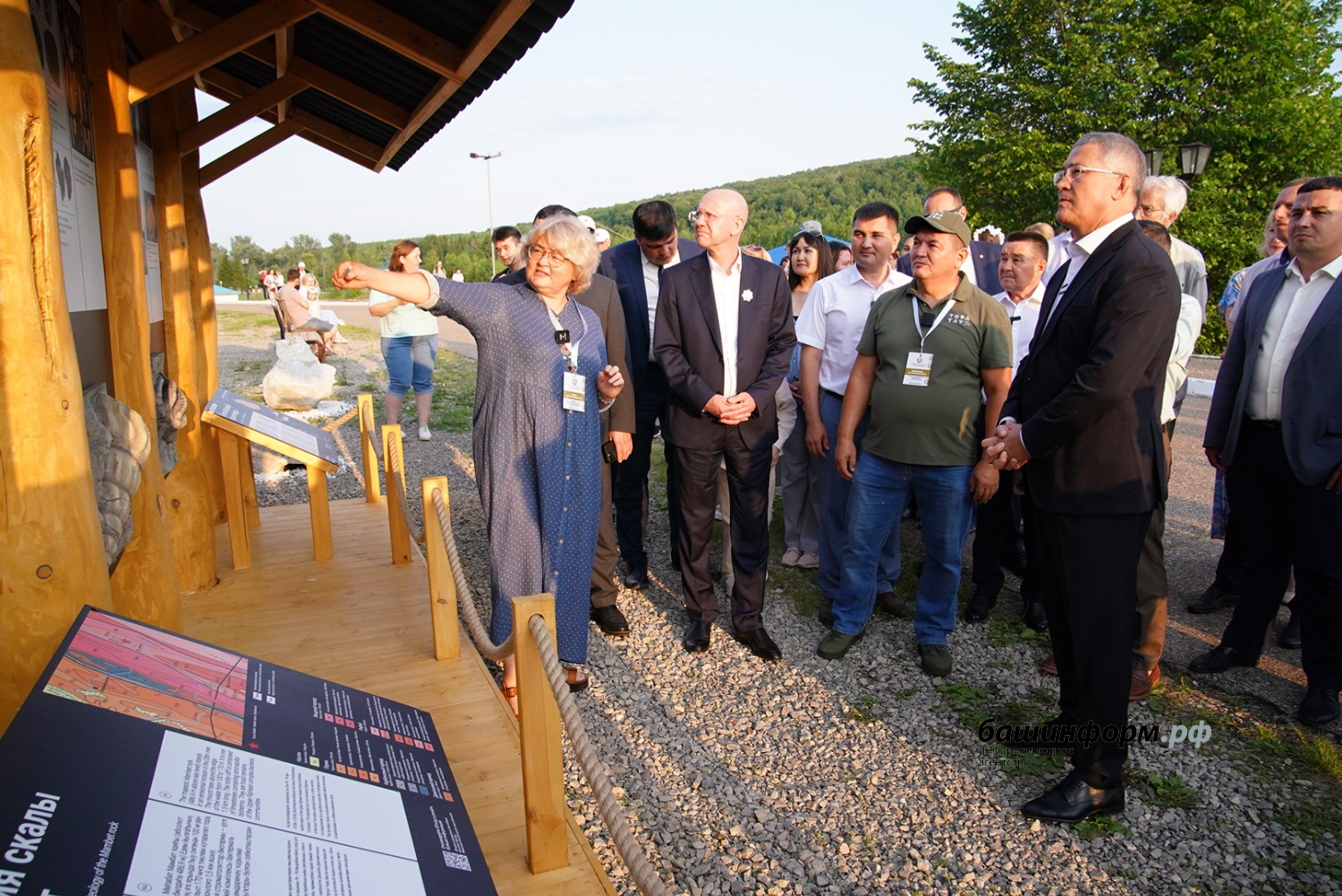 До начала церемонии открытия Глава Башкортостана Радий Хабиров, директор департамента по многостороннему гуманитарному сотрудничеству и культурным связям министерства иностранных дел Российской Федерации, ответственный секретарь Комиссии Российской Федерации по делам ЮНЕСКО Александр Алимов, ученые и эксперты из России, Китайской Народной Республики, Казахстана, Египта, Ирана ознакомились с уникальными геологическими образованиями, узнали об их значении и особенностях. Доктор геолого- минералогических наук Лариса Белан пояснила, что геопарк «Торатау», являющийся кандидатом на включение в Глобальную Сеть Геопарков ЮНЕСКО со статусом «aspiring» («стремящийся»), и где располагаются оба «золотых гвоздя», - уникальная территория, где сосредоточены не только природные красоты, но и значимые геологические объекты.
