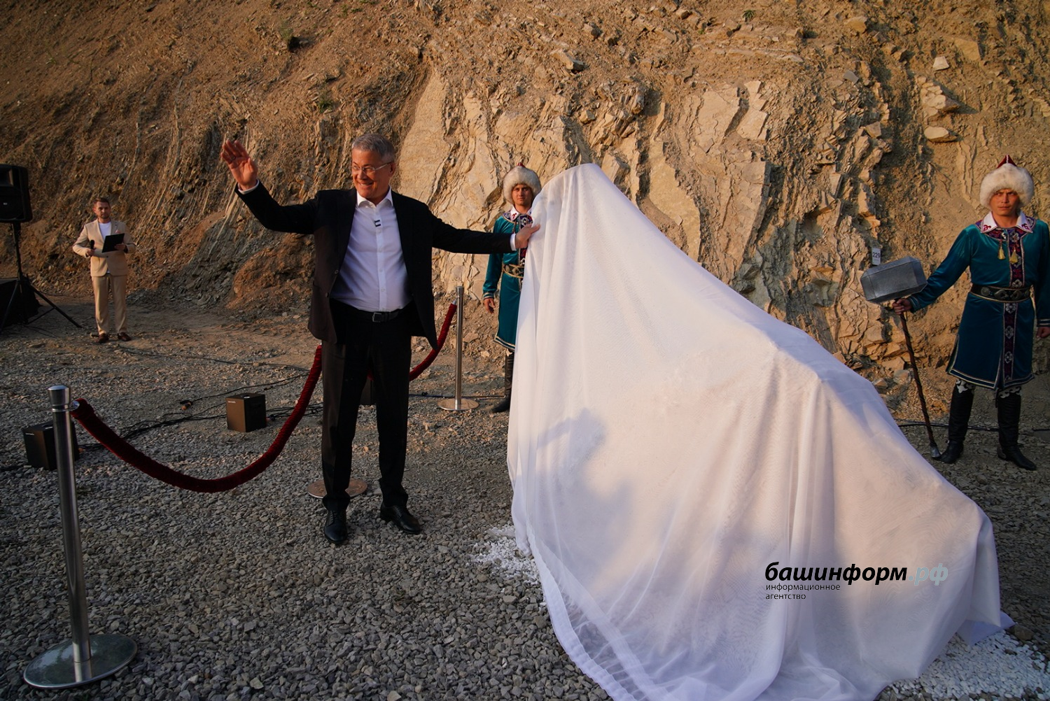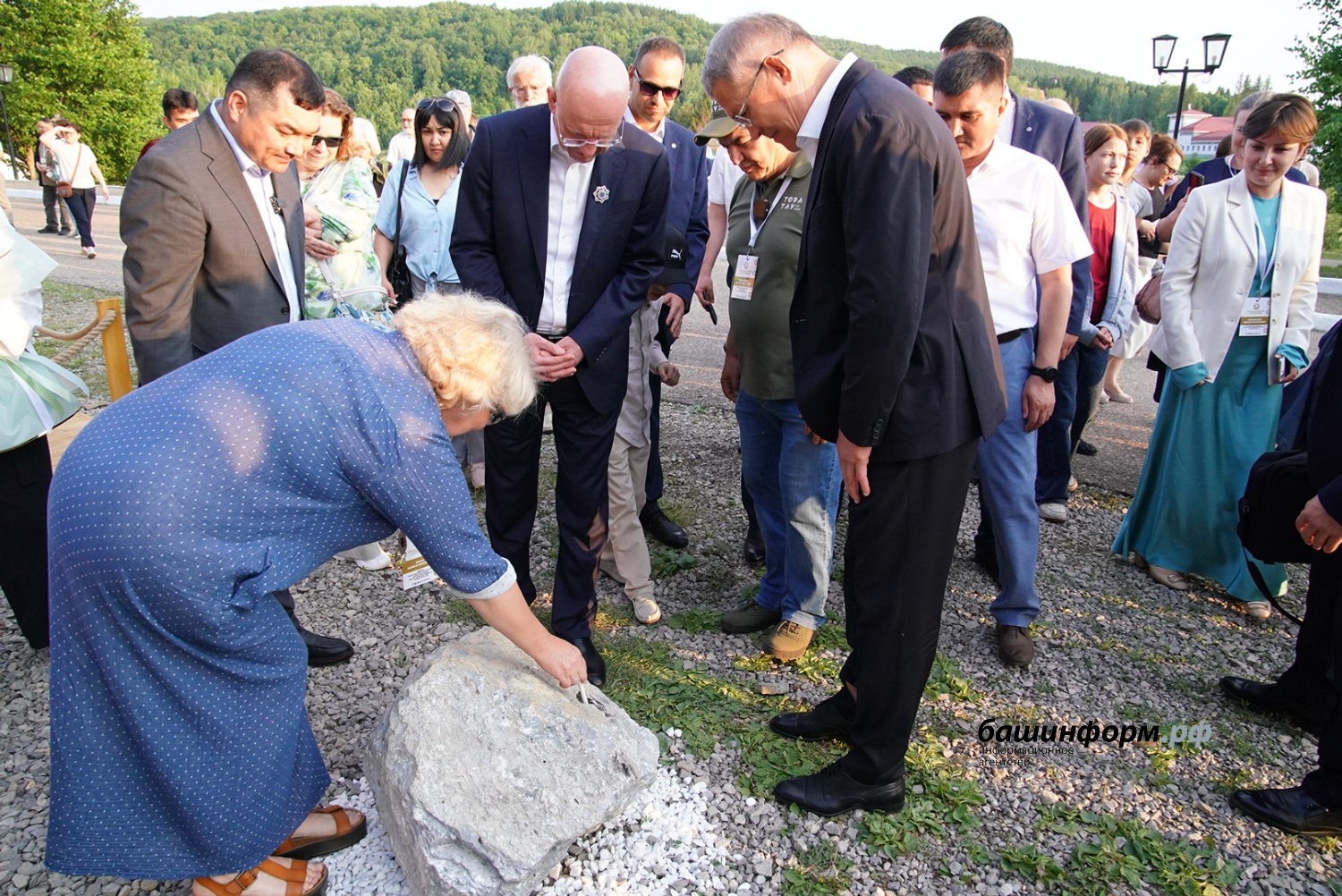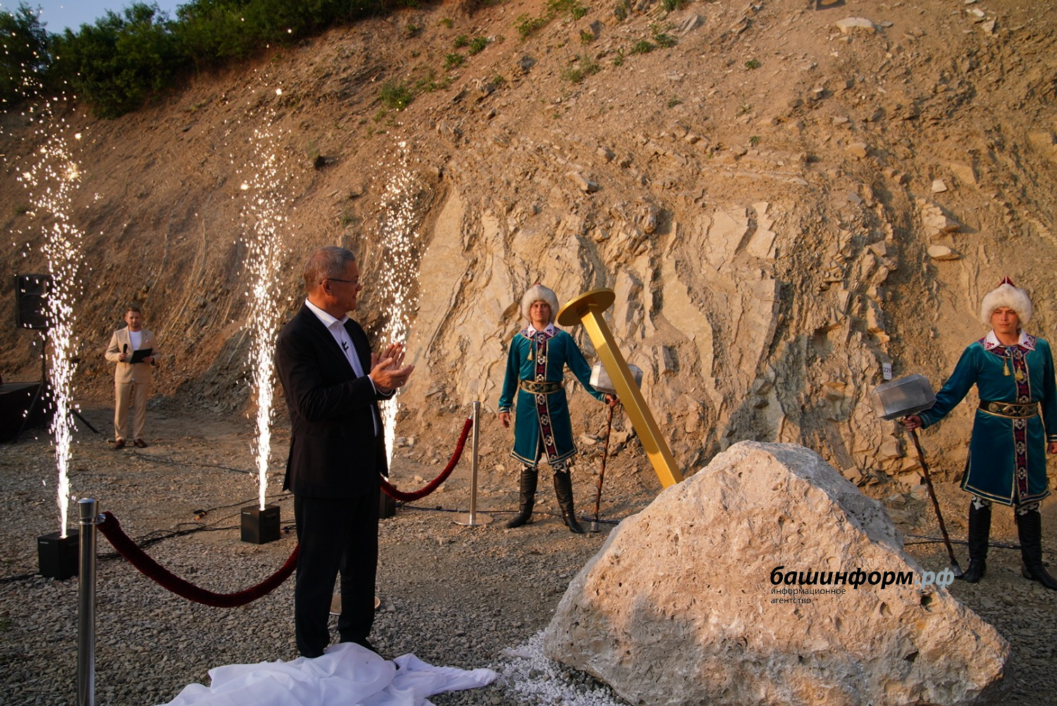 До начала церемонии открытия Глава Башкортостана Радий Хабиров, директор департамента по многостороннему гуманитарному сотрудничеству и культурным связям министерства иностранных дел Российской Федерации, ответственный секретарь Комиссии Российской Федерации по делам ЮНЕСКО Александр Алимов, ученые и эксперты из России, Китайской Народной Республики, Казахстана, Египта, Ирана ознакомились с уникальными геологическими образованиями, узнали об их значении и особенностях. Доктор геолого- минералогических наук Лариса Белан пояснила, что геопарк «Торатау», являющийся кандидатом на включение в Глобальную Сеть Геопарков ЮНЕСКО со статусом «aspiring» («стремящийся»), и где располагаются оба «золотых гвоздя», - уникальная территория, где сосредоточены не только природные красоты, но и значимые геологические объекты.