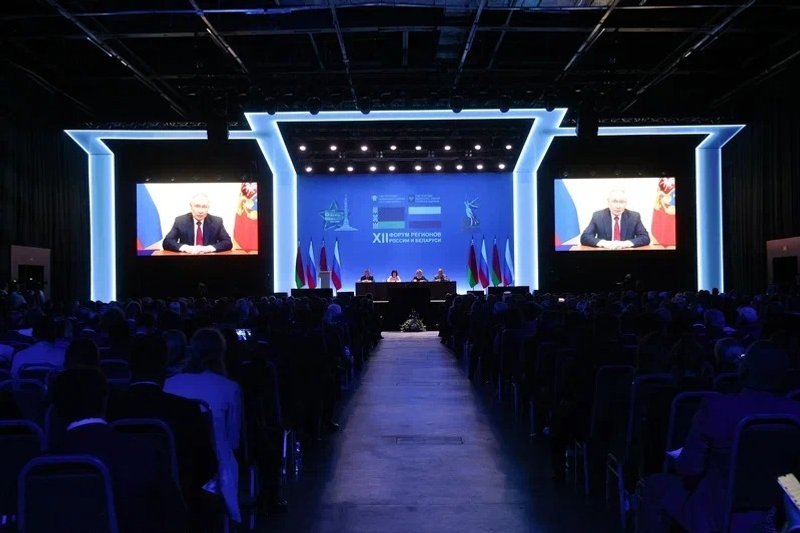 Видеообращение к участникам форума направил Президент России Владимир Путин. Глава государства подчеркнул, что встречи представителей регионов двух стран стали по-настоящему доброй традицией. В этом году в форуме участвуют более 800 делегатов из 79 субъектов Российской Федерации и всех белорусских областей. Владимир Путин поблагодарил участников форума за вклад в укрепление стратегического партнерства и отметил, что все регионы России и Беларуси участвуют в реализации совместных взаимовыгодных проектов.
