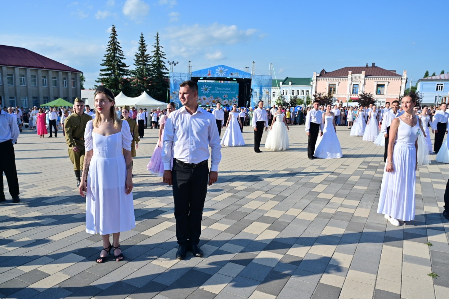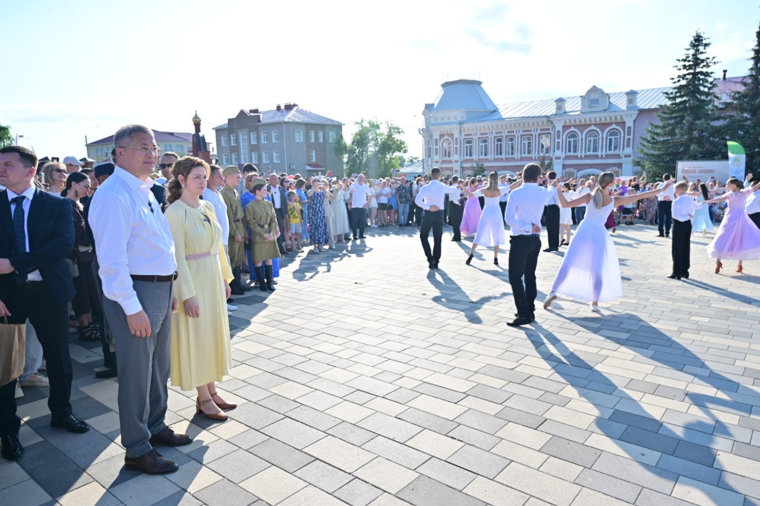 На одной из тематических площадок руководитель региона вместе с супругой и другими семейными парами станцевал праздничный вальс.