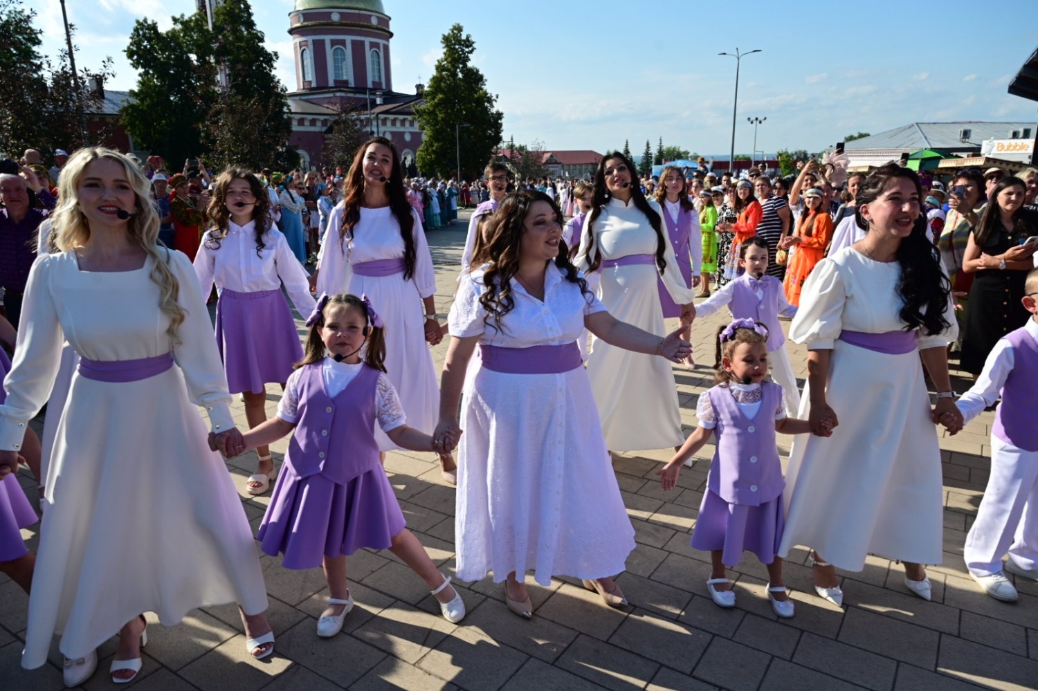Русское, татарское, чувашское, удмуртское, марийское и башкирское национальные подворья показали небольшие театрализованные представления, посвященные свадьбе, проводам юноши на войну, письмам с фронта, посылкам родным, солдатам на привале и встрече победителей.