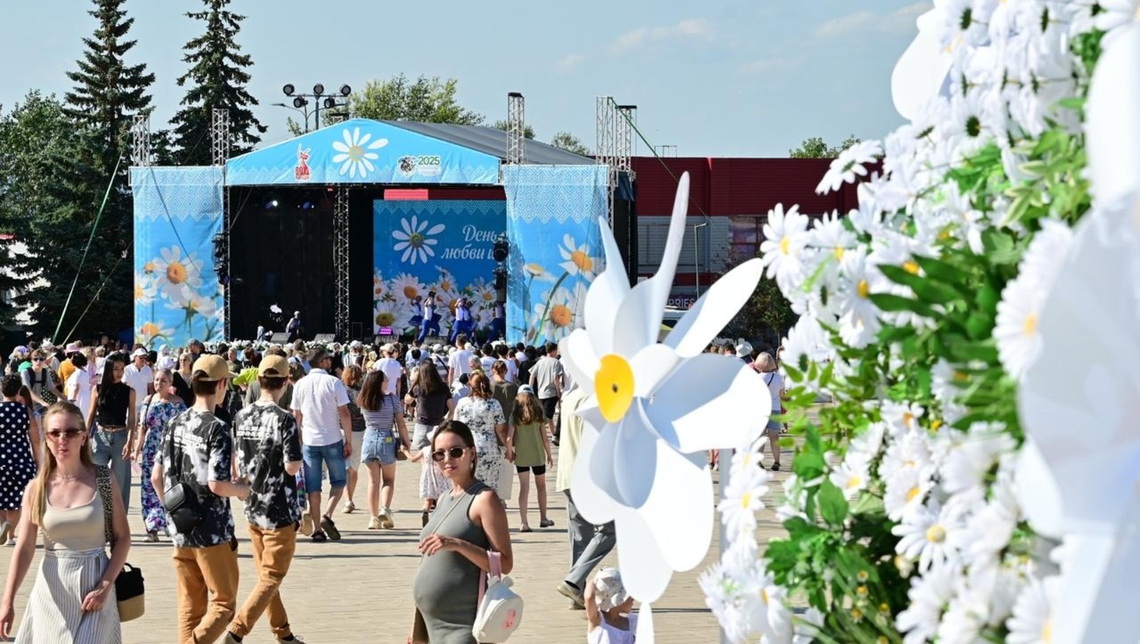 Центральной площадкой празднества стала Октябрьская площадь, украшенная ромашками — главным символом праздника.
