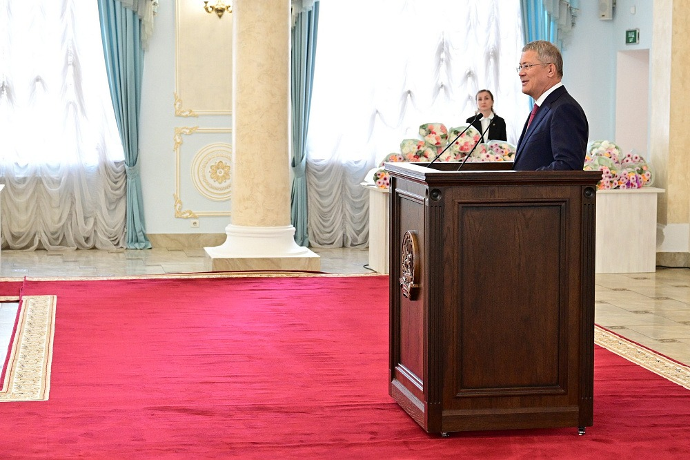 — Хочу выразить вам, уважаемые педагоги, слова благодарности за воспитание настоящих защитников Отечества. Сегодня выпускники наших школ достойно сражаются на передовой, проявляя мужество и героизм. Педагоги, ученики и родители объединились для оказания помощи участникам специальной военной операции, заботы об их семьях, чествования памяти наших героев. Спасибо вам, дорогие учителя, за то, что вы делаете для воспитания у ребят патриотизма, готовности защищать Родину, — сказал Радий Хабиров.