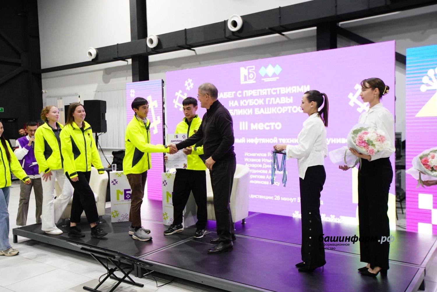 Руководитель региона также наградил победителей Забега с препятствиями на Кубок Главы Башкортостана. Лидером соревнований стала команда Уфимского университета науки и технологий. Второе место заняли студенты Уфимского юридического института МВД России, третье — представители Уфимского государственного нефтяного технического университета.