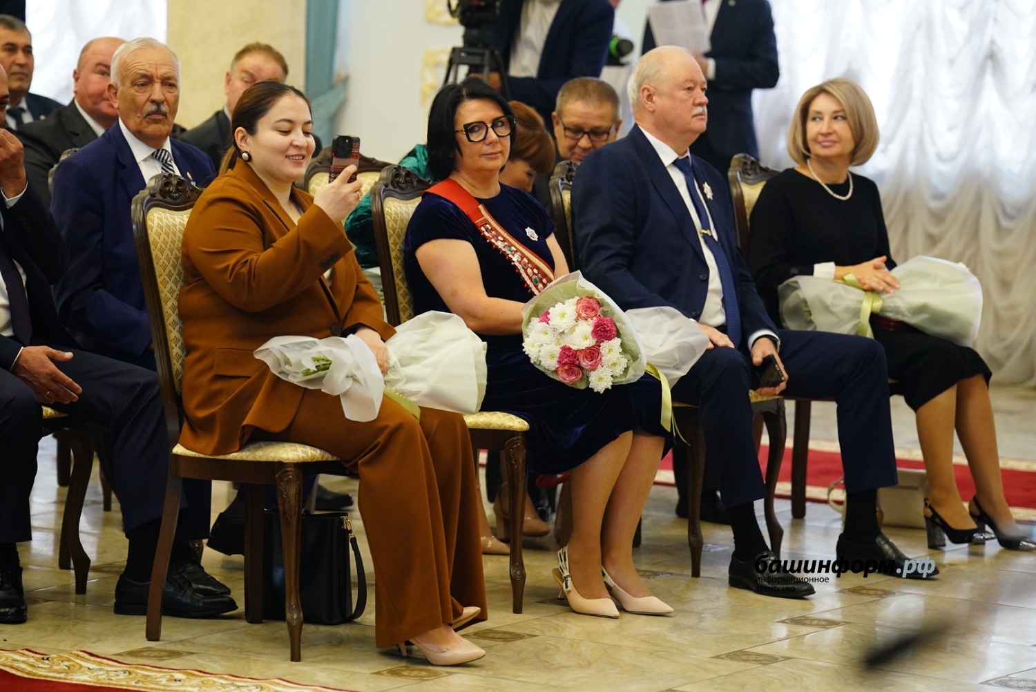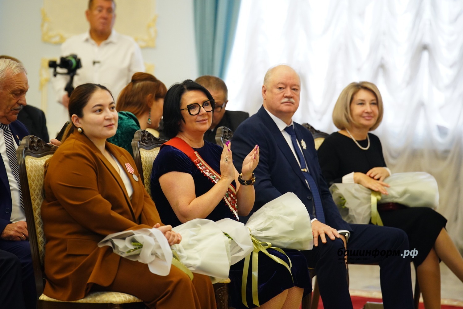 10 октября, накануне Дня Республики в Уфе Радий Хабиров вручил государственные награды России и Башкортостана. Руководитель региона отметил, что сегодня в этом зале собрался цвет нашей республики. Те, кто своим напряженным трудом пишет современную историю Башкортостана.