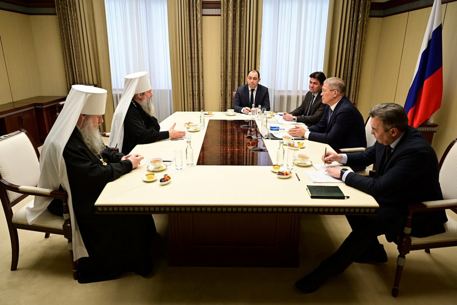 В Доме Республики состоялась встреча Главы Башкортостана Радия Хабирова с митрополитом Екатеринбургским и Верхотурским, председателем Синодального отдела религиозного образования и катехизации Евгением. Во встрече также принял участие митрополит Уфимский и Башкортостанский Филарет. На повестке – сотрудничество в области укрепления межконфессионального согласия.