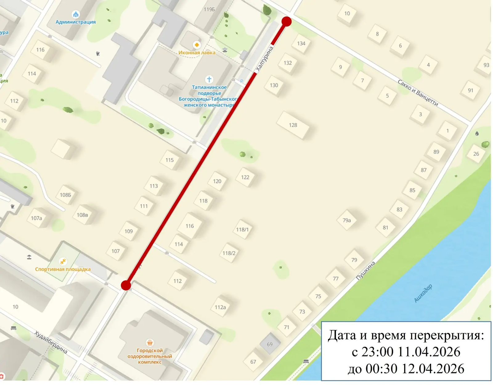 По данным администрации Стерлитамака, на время ночного богослужения будет перекрыто движение транспорта с 23.00 11 апреля до 00.30 12 апреля по ул. Халтурина — на участке от ул. Худайбердина до ул. Сакко и Ванцетти.