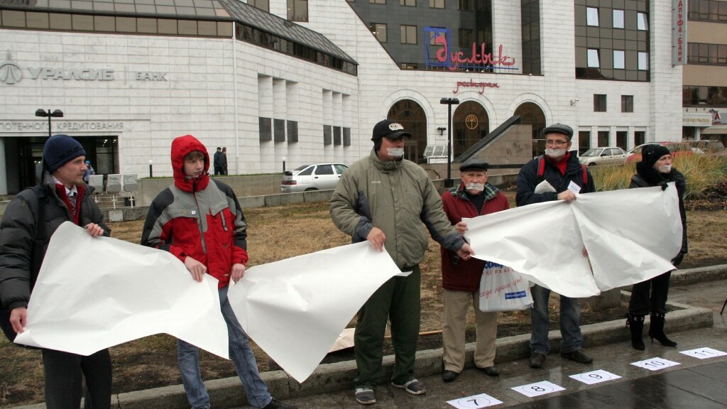 В субботу, 13 ноября, у памятника Дзержинскому в Уфе состоялся пикет в защиту прав журналистов. В нем приняли участие 13 человек. Пикет начался в 13 часов, продолжался ровно 13 минут, во время которых пикетчики стояли молча с заклеенными скотчем ртами. Такой флэш-моб, по идее организаторов, должен был показать бесправие российских журналистов перед произволом чиновников и преступников.