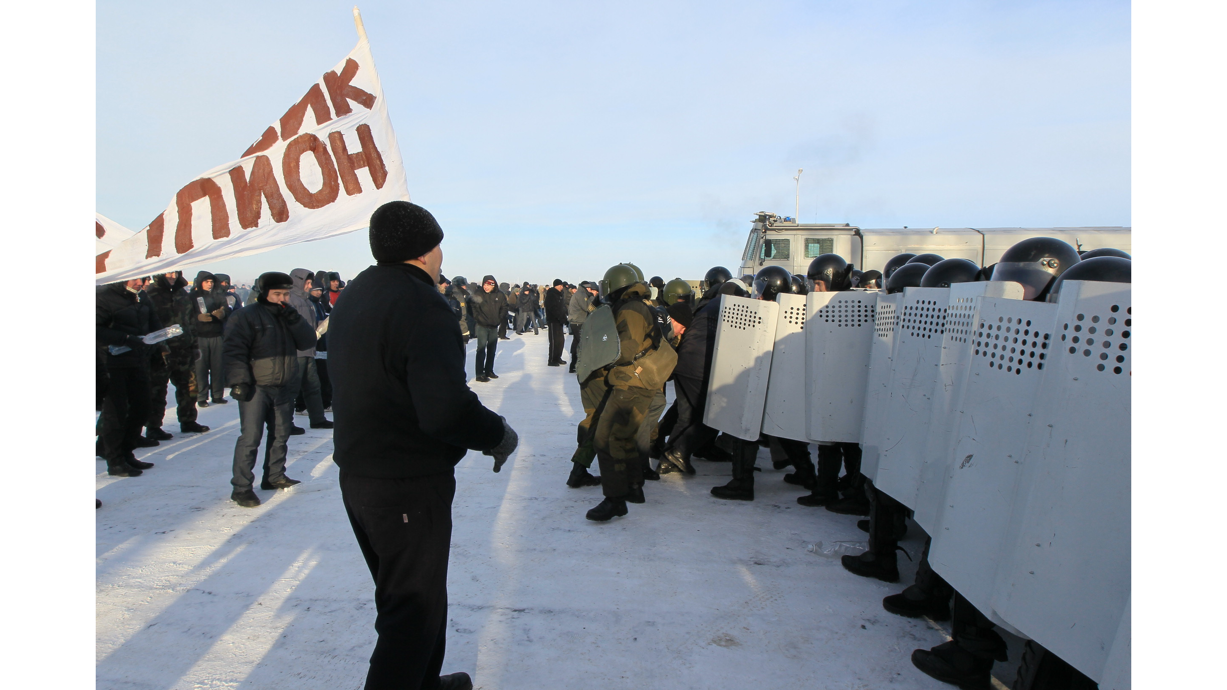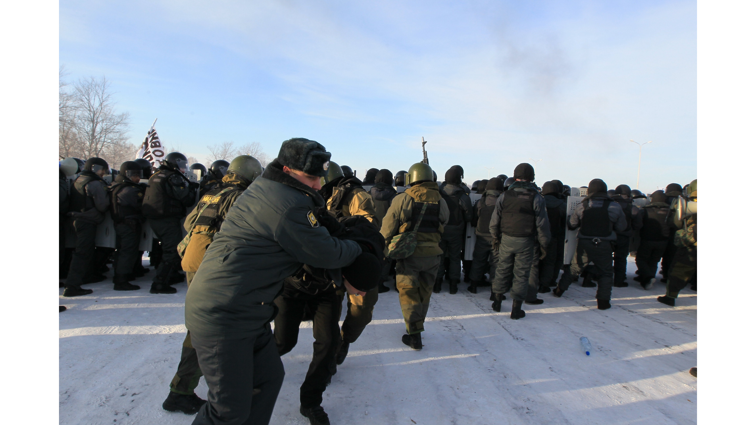 Под Уфой на морозе ОМОН разгонял футбольных фанатов