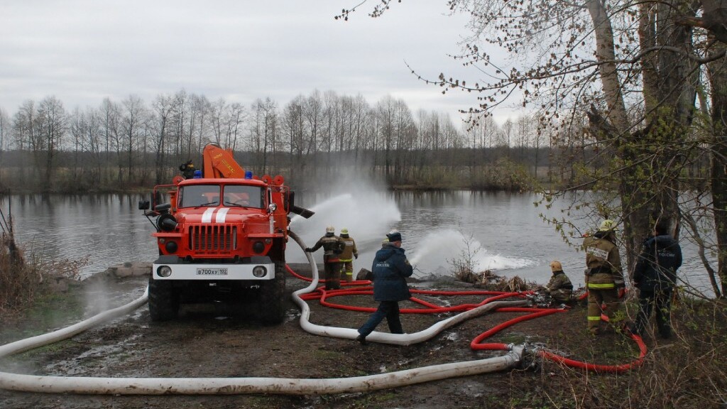 В свою очередь, пожарные потренировались в спасении людей и подаче воды от ближайшего источника. К озеру Кустарево подъехала пожарная насосная станция и подавала воду по «рукавам» к месту происшествия.