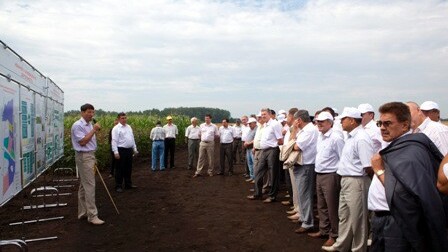 Декан агрономического факультета БГАУ, профессор Мухамет Хайбуллин представил результаты испытаний экологической устойчивости сортов кукурузы разного целевого использования (15 гибридов), а также результаты испытаний биологических препаратов и использования регуляторов роста на яровой пшенице, показал посевы яровой пшеницы местной республиканской селекции.