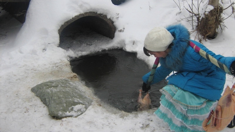 Обработанных гусей прополоскали в проруби – так они быстро покрываются тонкой ледяной корочкой, которая надежно предохраняет их от обветривания и способствует долгому хранению в свежем виде.