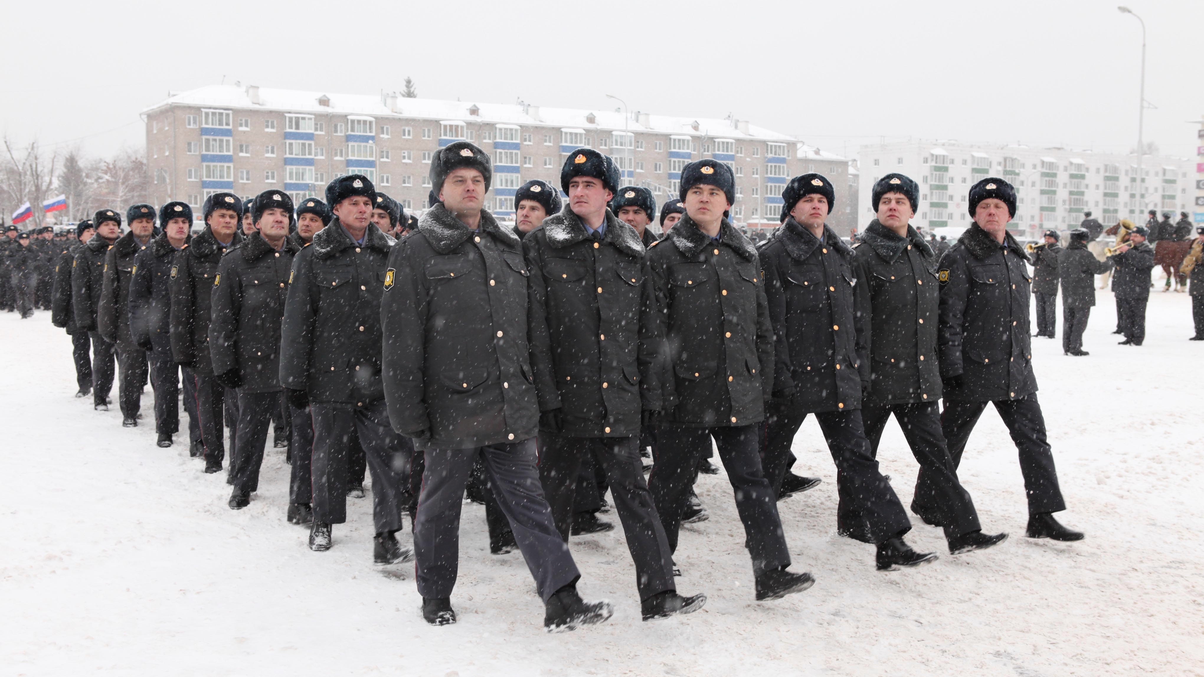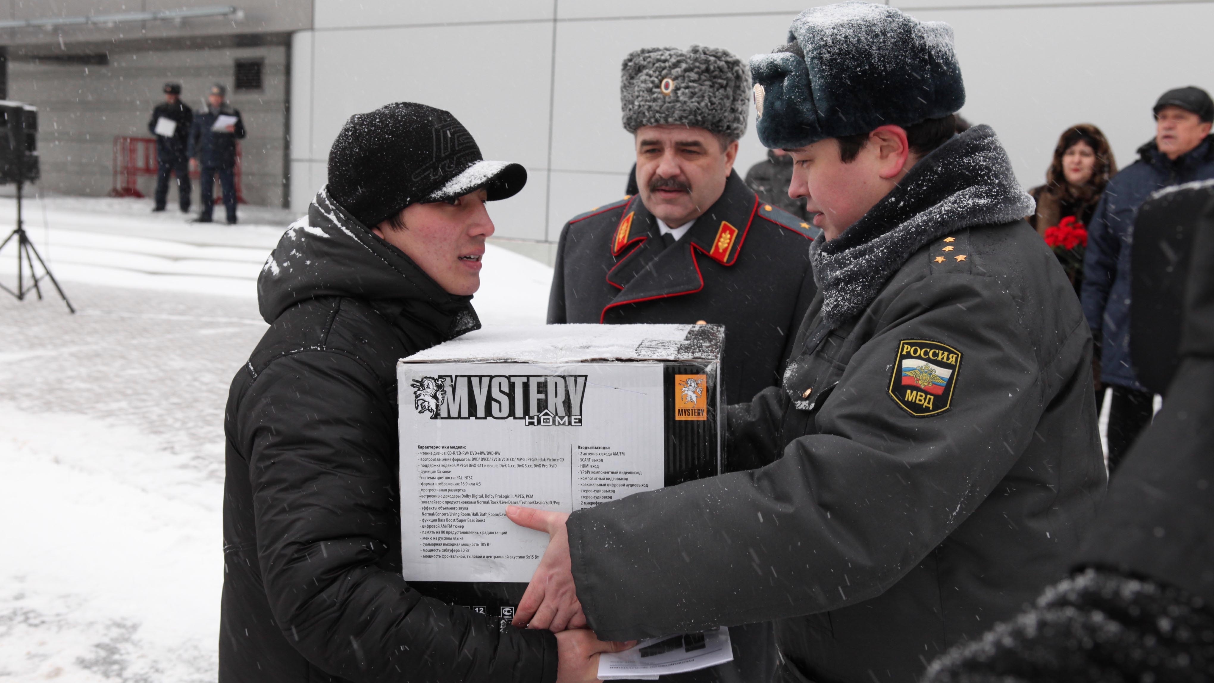 На полицейском параде были вручены машины, подарки и медали