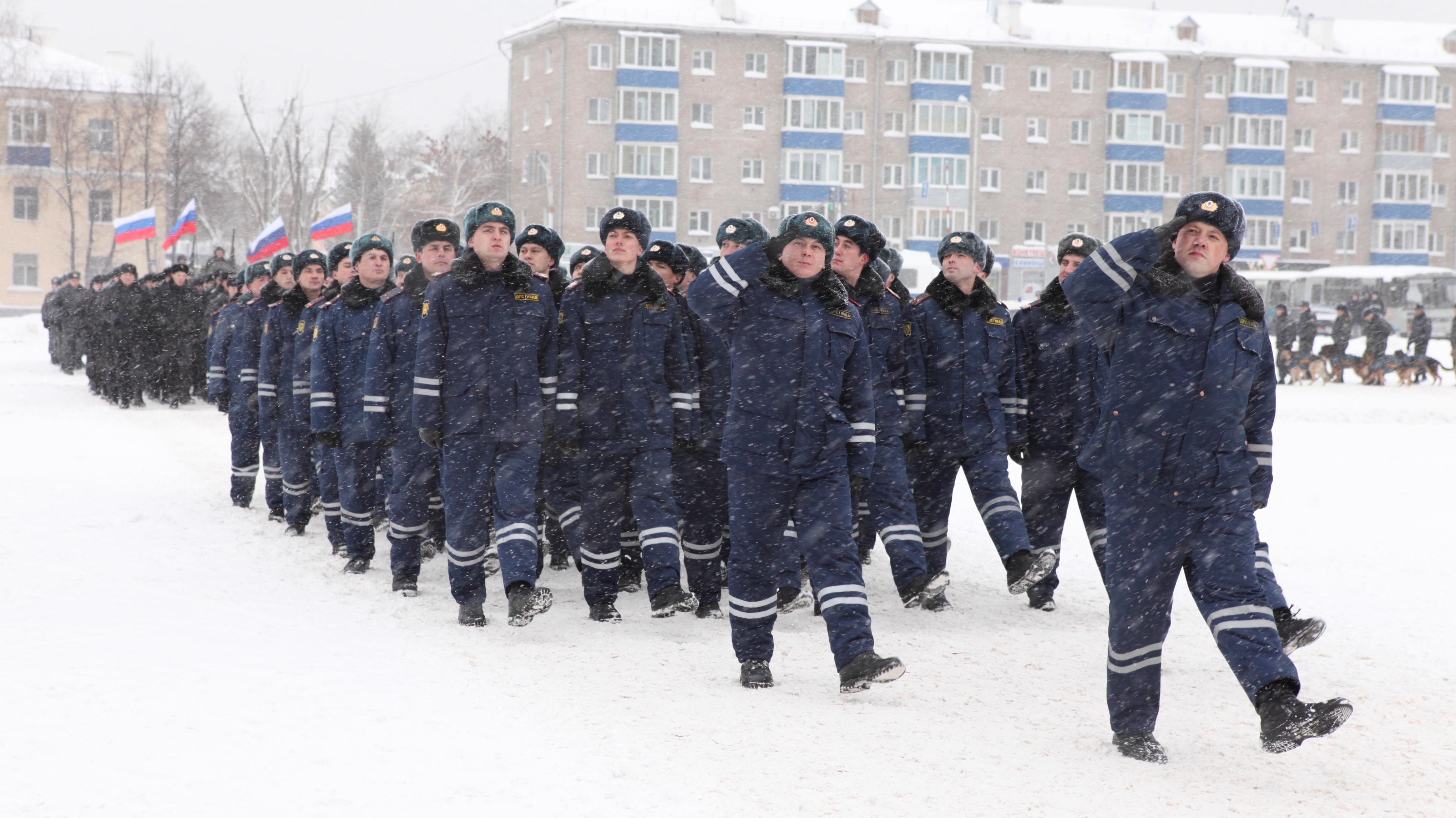 В смотре перед министром и гостями прошли все службы полиции, задействованные в охране города. Уфимцам представили полицейский спецтранспорт, от УАЗов до бронемашин и вертолета. Парадом промаршировали патрульно-постовые службы, дорожные патрули, ОМОН, вневедомственная охрана. В параде приняли участие курсанты Центра подготовки МВД по РБ, Уфимского юридического института МВД России, отряд спецназа «Булат», ЧОПы, конная полиция и кинологическая служба.