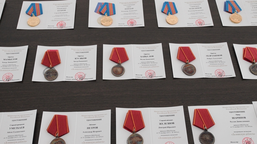 Сегодня в Уфе состоялось чествование военнослужащих 29 отряда специального назначения «Булат», которых командование внутренними войсками МВД России наградило правительственными наградами и ценными подарками. Пятеро спецназовцев получили автомобили «Лада Приора». Семнадцати воинам вручили медали «За воинскую доблесть» и «За боевое содружество».