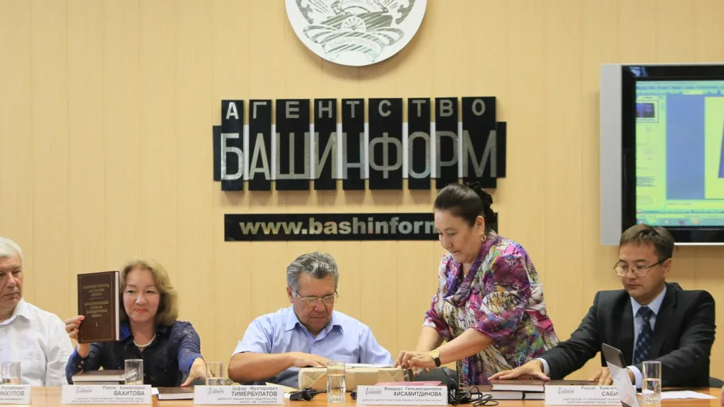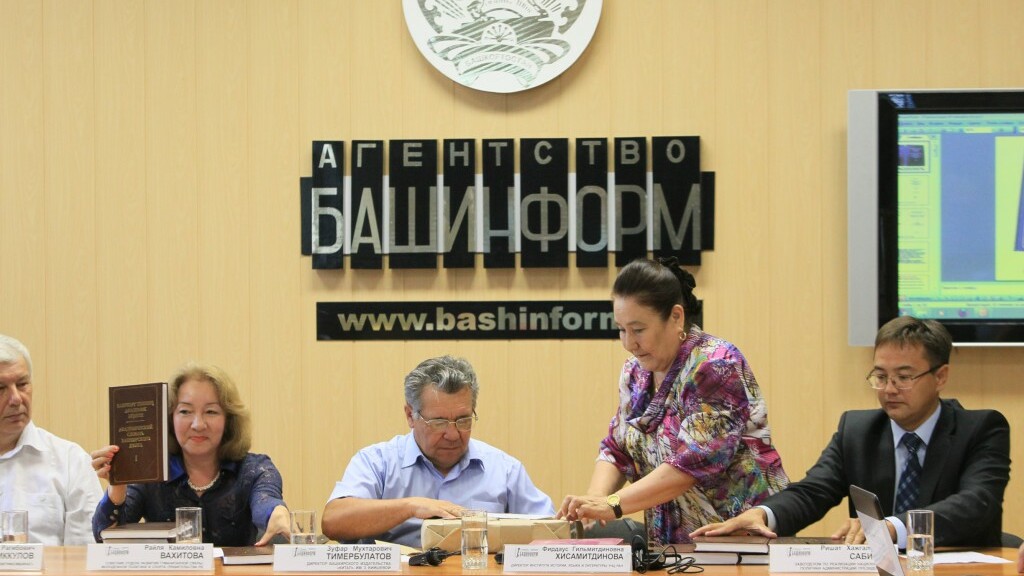 19 июня в агентстве «Башинформ» прошла презентация первых двух томов многотомного академического толкового словаря башкирского языка. В ней приняли участие директор Института истории, языка и литературы Уфимского научного центра РАН Фирдаус Хисамитдинова, директор Башкирского издательства «Китап» имени З.Биишевой Зуфар Тимербулатов, директор ГУП РБ «Уфимский полиграфкомбинат» Шамиль Биккулов, заместитель начальника Управления общественно-политического развития Администрации Президента РБ Ришат Сабитов, советник отдела развития гуманитарной сферы, молодежной политики и спорта Аппарата Правительства РБ Райля Вахитова, журналисты.