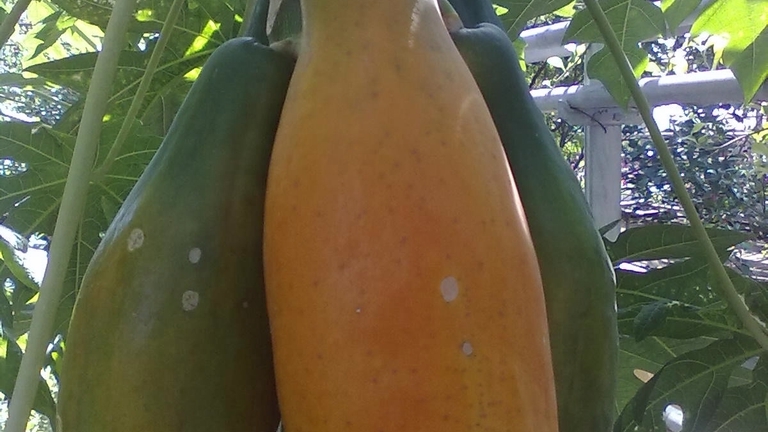 Деревом папайю не назовешь. Хотя ее второе название - дынное дерево. Она больше напоминает древовидный травянистый кустарник. В природе встречаются как двудомные растения, так и гермафродиты. В нашем случае оно оказалось именно гермафродитом, поэтому и порадовало плодами.
