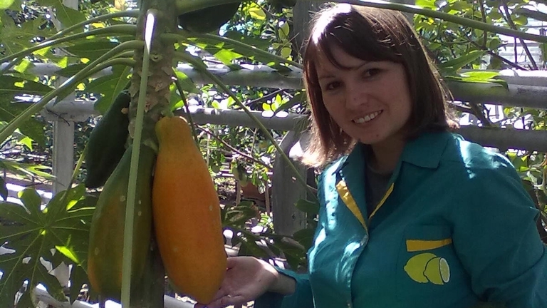 Два года посетители Уфимского лимонария восторгались бурным цветением папайи, она наполняла теплицы ароматом цветущего ландыша. В прошлом году Фарида Садыкова решила продолжить эксперимент и высадила растение из горшка в грунт под стеклом. Эффект от этой пересадки превзошел все ожидания – после цветения на растении завязались плоды. Правда, урожая ждать пришлось очень долго – почти 10 месяцев. В тропических странах он созревает гораздо быстрее, всего за 4-6 месяцев.