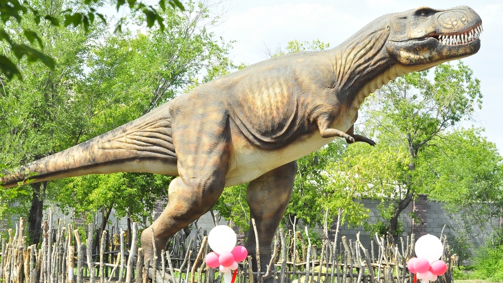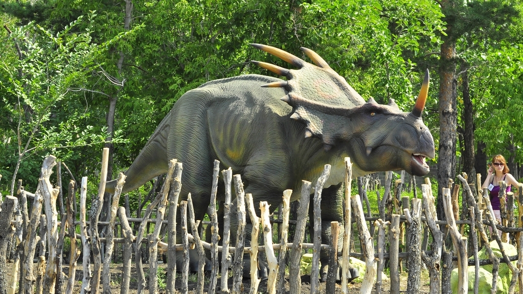 Все модели динозавров издают звуки и могут двигаться. Тираннозавр, игуанодонт, стегозавр, брахиозавр и много других, всего 28 экспонатов. Помимо динозавров здесь можно увидеть четырехметровую гориллу, верблюда, жирафа, зебру, льва.