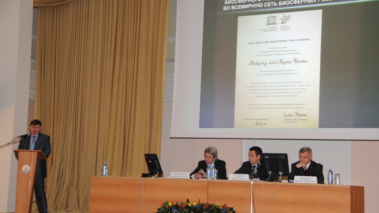 Ответственный секретарь Комиссии РФ по делам ЮНЕСКО Григорий Орджоникидзе поздравил всех со знаменательным событием - открытием биосферного резервата «Башкирский Урал». Однако посетовал, что, к сожалению, в российском законодательстве есть «белые пятна» - оно не всегда соответствует программе ЮНЕСКО «Человек и биосфера». Но работа по приведению нашего законодательства в соответствие с нормами международного права ведется.