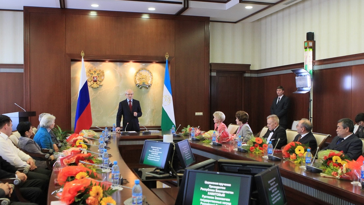 Открывая торжественную церемонию, Рустэм Хамитов поблагодарил участников за вклад, который они внесли в развитие и процветание республики и всей страны в целом.
