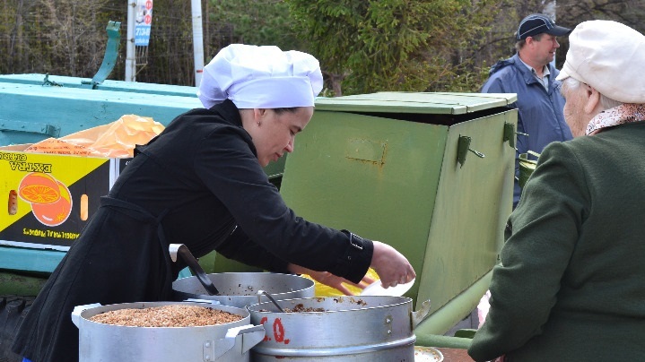 9 мая во всех парках и на всех площадях Уфы, а также у памятников героям прошли акции памяти. Не стала исключением и площадь перед Народным торговым центром «Башкортостан», где ко Дню Победы была организованна концертная программа и традиционное угощение солдатской кашей.