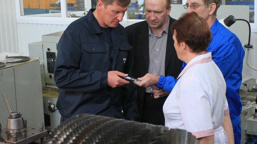 - В десятом классе у нас урок труда проходил на «Гидравлике», и по окончании года нам презентовали второй разряд токаря-револьверщика, - поделился впечатлениями Андрей Иванюта. - Поскольку это самая знакомая, одна из нескольких моя профессия, поэтому решил поработать здесь, вспомнить. Как оказалось, еще остались какие-то навыки. Мне предложили эту деталь. Это ротор турбины. Мы сняли фаску, обработали одну из граней. Мне сказали, что эта деталь не пойдет в производство, она находится здесь в качестве опытного образца, - подытожил министр.