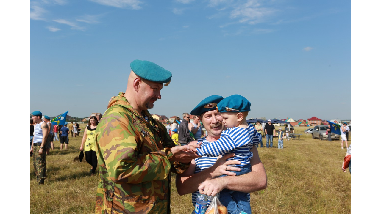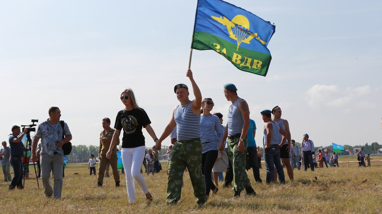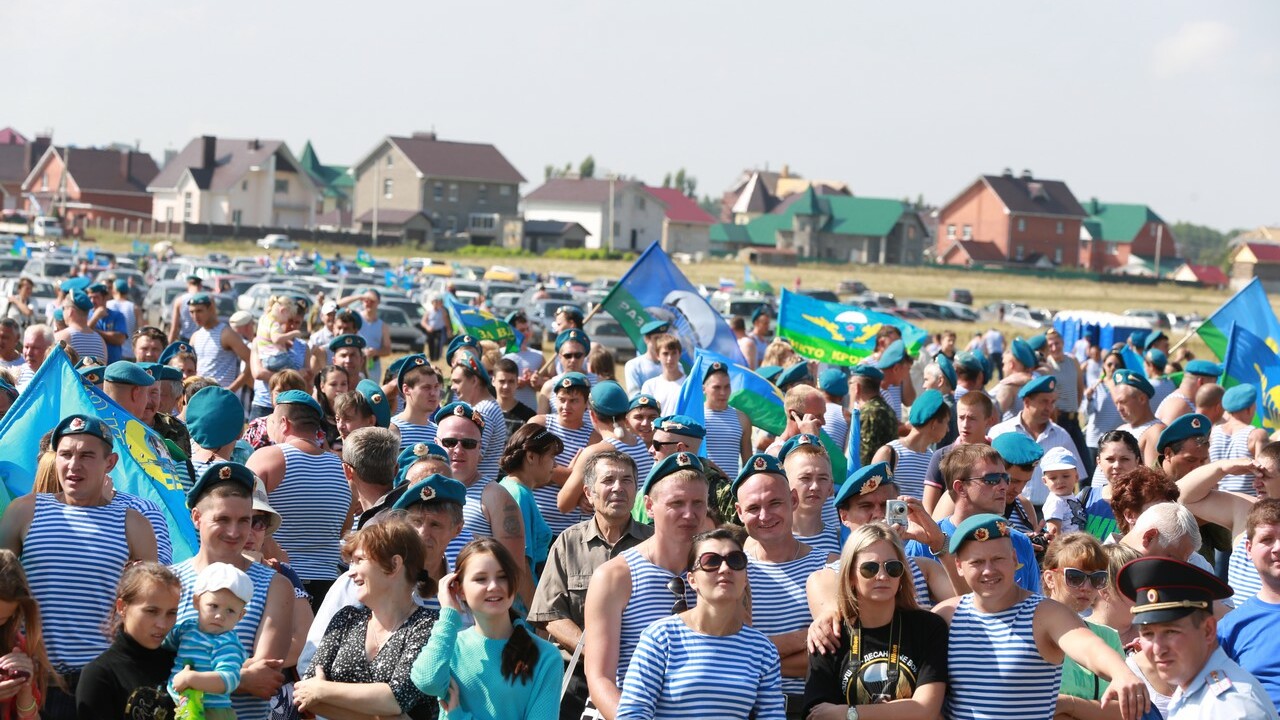 Как всегда, верные своей форме - голубым беретам и полосатым тельняшкам, на поле аэродрома собрались десантники разных поколений.