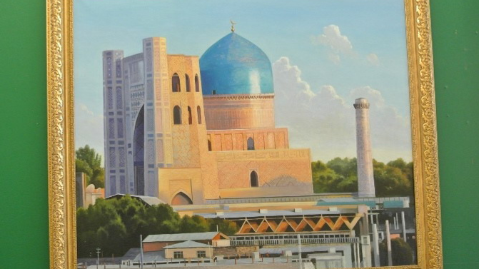 Экспозиция включает 12 живописных полотен, на которых изображены знаменитые культовые сооружения: Мечеть Султана Ахмета в Стамбуле, Великая Мечеть в Кувейте, Мечеть Калон в Бухаре, Мечеть Баджахи в Пакистане, Мечеть Биби Ханум в Самарканде и другие храмы, ставшие памятниками архитектуры и мировой культуры. Коллекция картин принадлежит уфимской мечети 25 пророков.