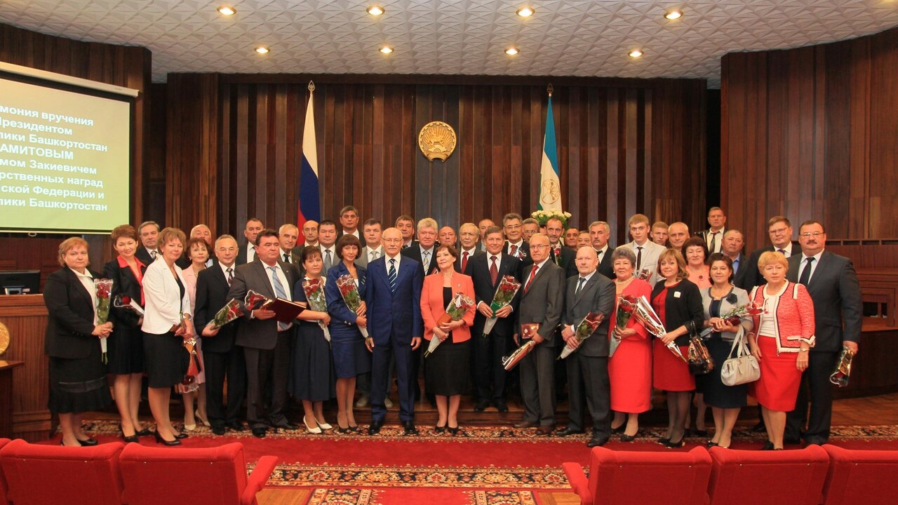 Президент Башкортостана Рустэм Хамитов в пятницу, 6 сентября, вручил государственные награды Российской Федерации и Республики Башкортостан. Медали, ордена и звания заслуженных работников получили учителя, врачи, ученые, журналисты и производственники, государственные и муниципальные служащие - все те, кто способствует экономическому, социальному и духовному развитию нашей республики.