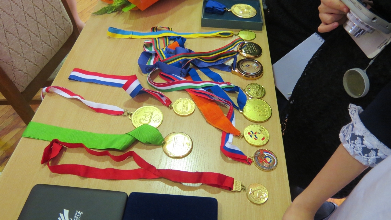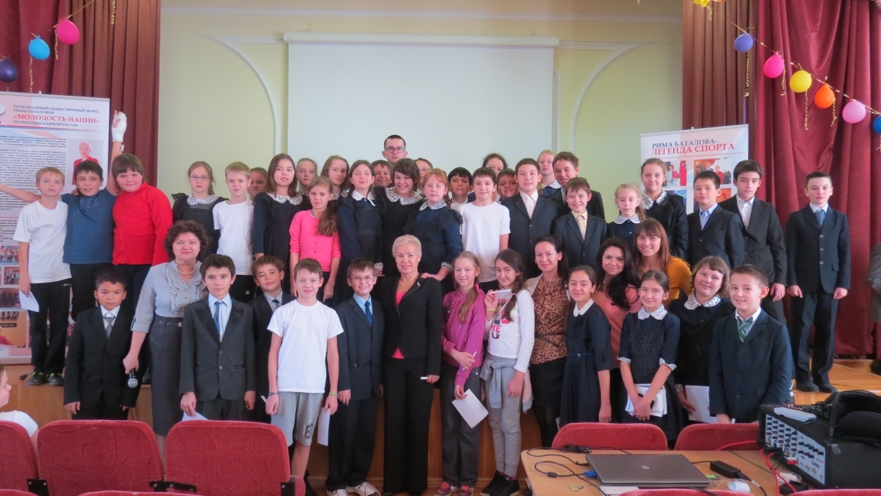 Ребята проявили неподдельный интерес к необычному учителю, получив возможность задать самые разные вопросы. Гимназистам были продемонстрированы золотые медали, полученные прославленной чемпионкой на соревнованиях различных уровней. Самые активные ученики получили памятные подарки от Регионального общественного фонда Римы Баталовой «Молодость нации».