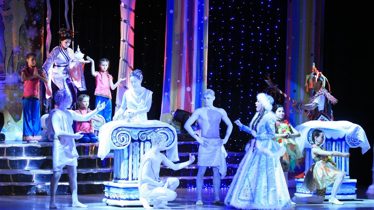 А затем гостей пригласили в зрительный зал на музыкальный спектакль-сказку «Музей Нового года». Снежинки в серебристых платьях, аборигены, египетский фараон, ожившие мумии, древнегреческие богини и много других героев рассказали историю о том, как Дед Мороз создал Музей Нового года и сам же потерялся в нем.