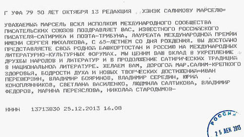 Сегодня исполняется 65 лет известному башкирскому писателю-сатирику, поэту, журналисту и общественному деятелю Марселю Салимову (псевдоним Мар.Салим). Знаменательную дату мастер острого пера встречает в отличной творческой форме, с хорошим новогодним настроением. Однако, как часто говорит сам юбиляр, главным своим праздником он считает 1 апреля – Международный день смеха.