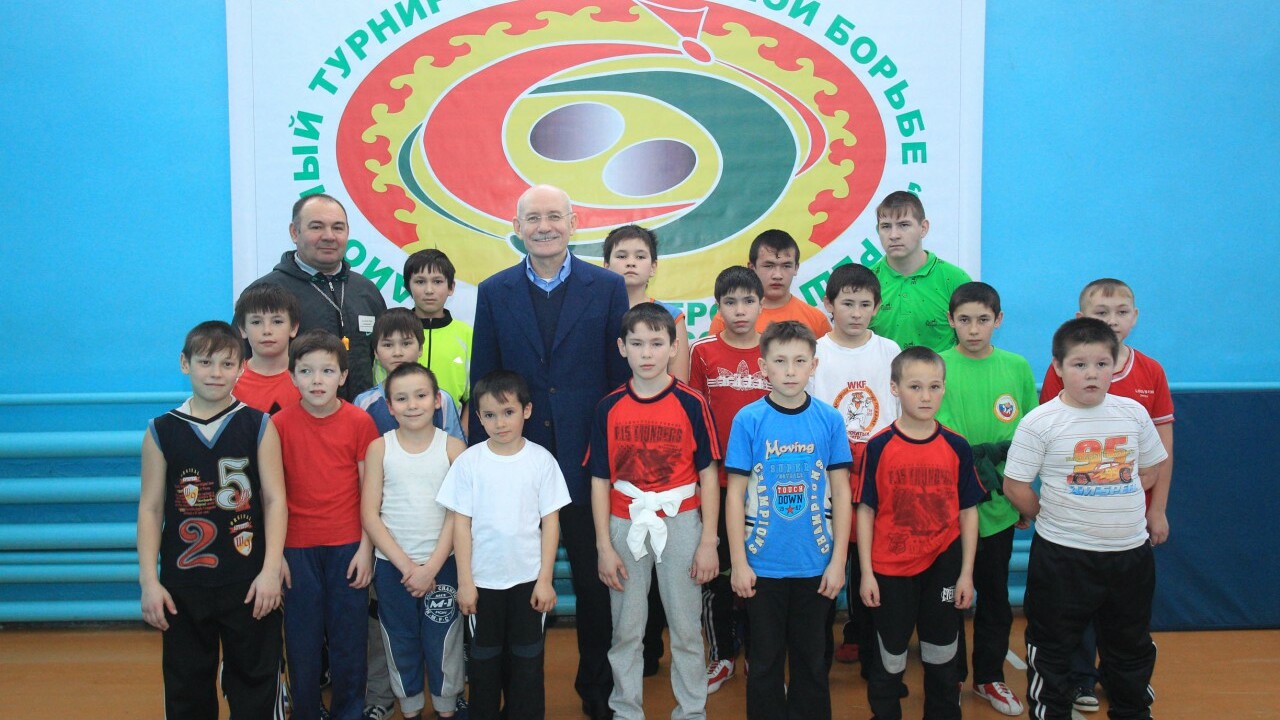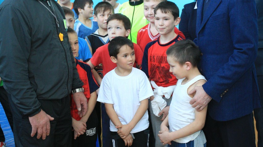 Также Рустэм Хамитов пообщался с ребятами, занимающимися в секции национальной борьбы.