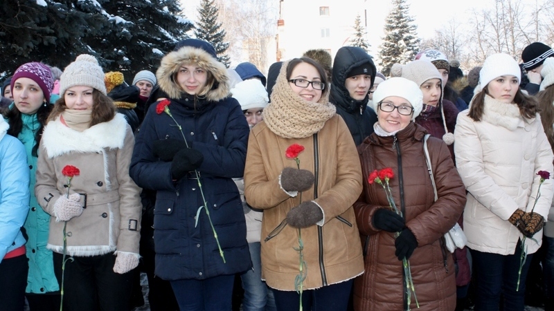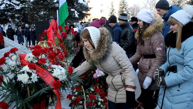 В память героев, погибших при защите Родины, была объявлена минута молчания. Затем участники митинга возложили цветы к стеле.